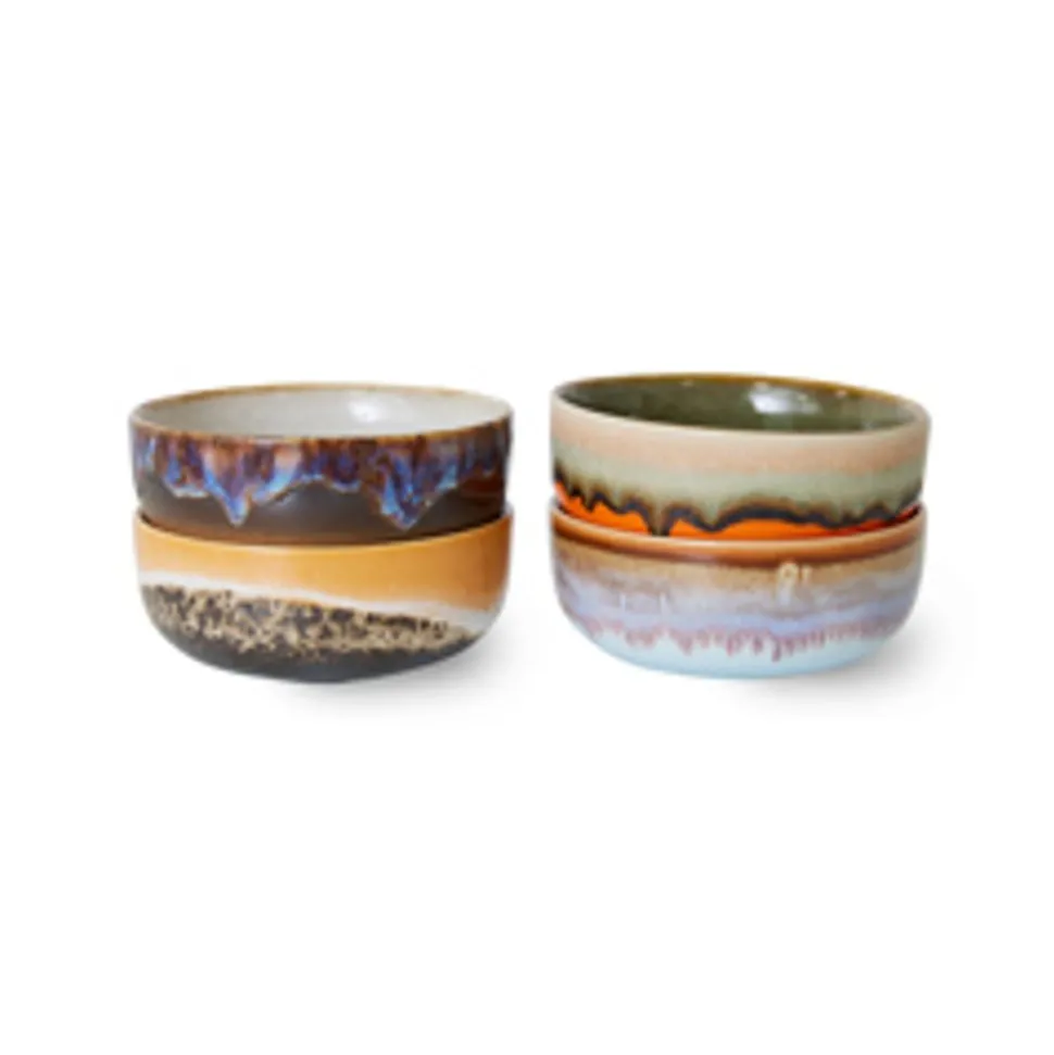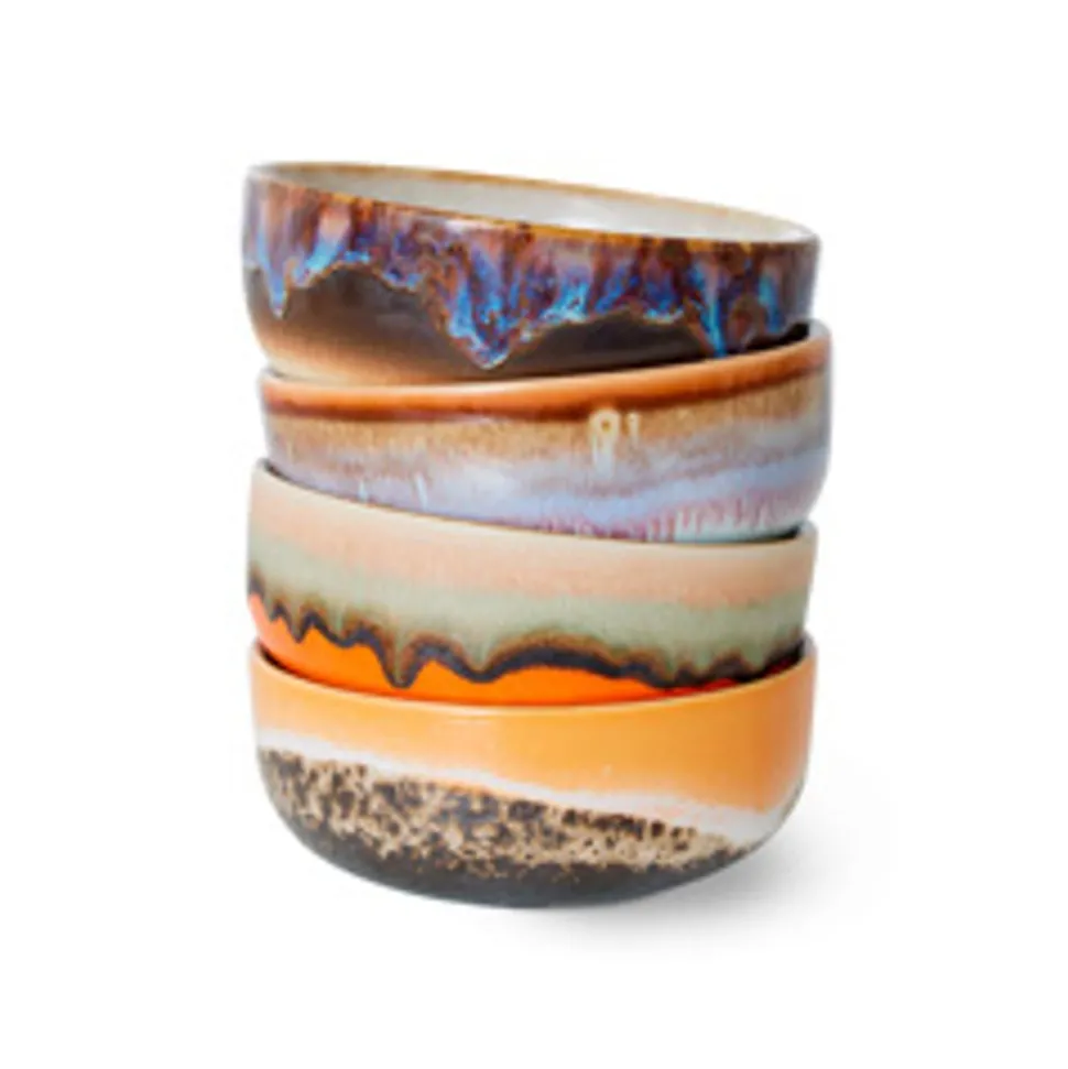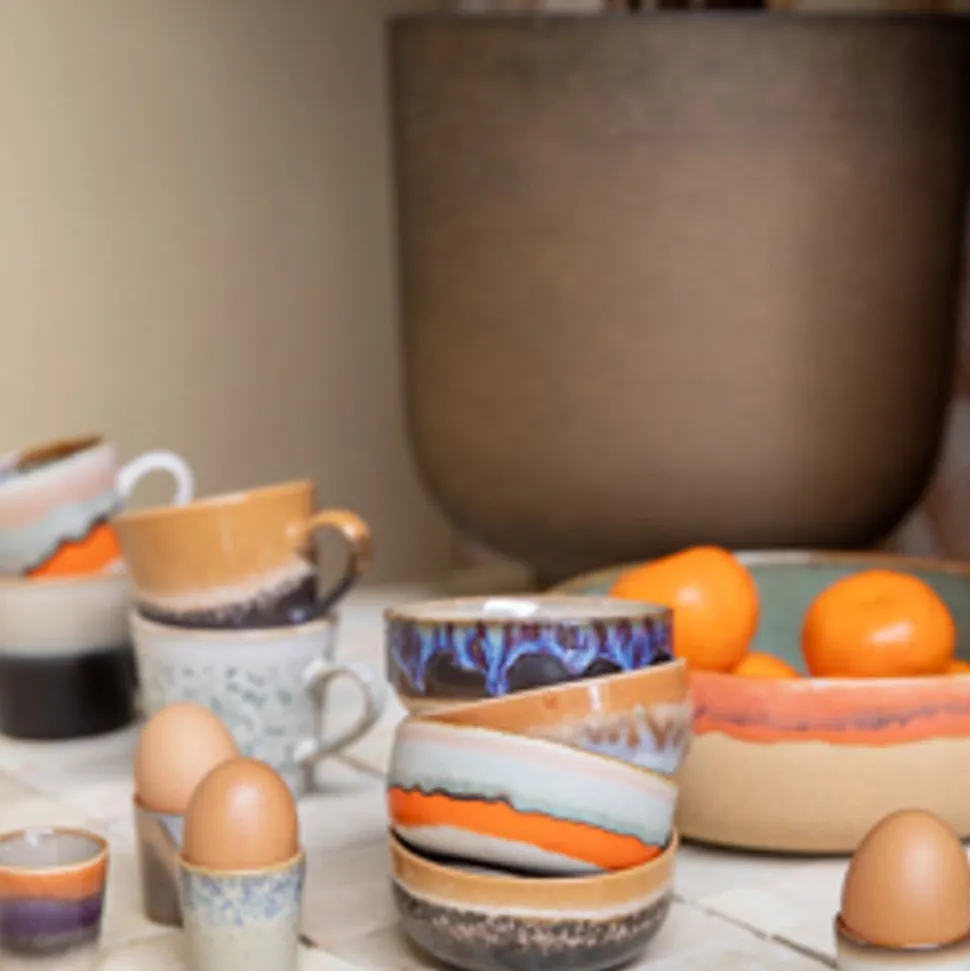 Lebendige Farben, nostalgische Muster und einzigartige Materialien. Die 70’s Ceramic Collection von HK Living ist eine Mischung aus modernen Pastellfarben und Retro-Mustern, die in einer einzigartigen Keramikschale wiedergegeben werden. Die Serie wird aus handgefertigtem Steinzeug hergestellt, was zu Variationen in Farbe und Muster beiträgt, so dass jede Schale einzigartig ist.