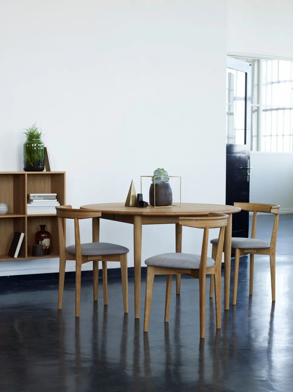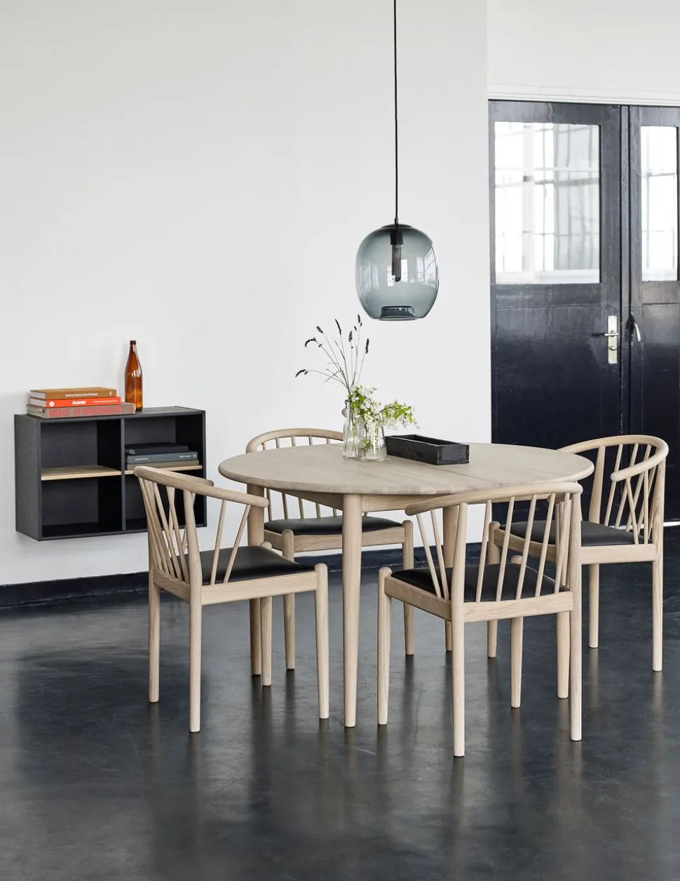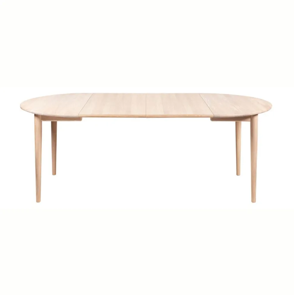 Der 800 Esstisch von ist ein Zeugnis für zeitloses skandinavisches Design und Handwerkskunst. Dieser elegante Esstisch wurde fachmännisch aus Massivholz gefertigt und ist sowohl in runder als auch in ovaler Form erhältlich, wodurch er sich vielseitig für verschiedene Essbereiche eignet. Durch die Ausziehfunktion und die zusätzlichen Blätter eignet sich der Tisch sowohl für intime Abendessen als auch für größere Zusammenkünfte und verbindet nahtlos Funktionalität mit Ästhetik.