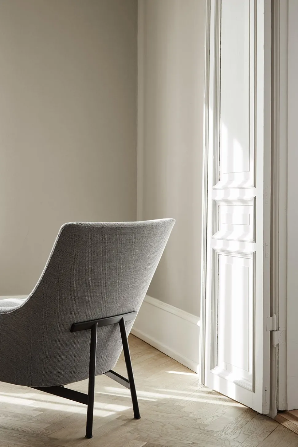 Jens Risoms „A-Chair“ ist ein perfektes Beispiel für seine skandinavisch-amerikanischen Entwürfe, die auf einer Philosophie stromlinienförmiger Formen und bescheidenen Komforts beruhen. Jens Risom gehörte zur goldenen Generation von Designern der dänischen Moderne, die sich durch außergewöhnliche Qualität in der Ausführung und bei den Materialien auszeichnete und gleichzeitig mit dem visuellen Ausdruck experimentierte. Die Schale des Stuhls besteht aus einer Kombination aus stromlinienförmigen und organischen Kurven mit einer Neigung, die dem Stuhl ein klassisches Lounge-Gefühl verleiht. Das Gestell ist aus kontrastierendem, schwarz lackiertem Stahl gefertigt, die Stuhllehne ruht auf der charakteristischen, a-förmigen Rückenlehne. Ursprünglich ein praktisches Merkmal, ist die Rückenlehne heute das charakteristische Detail des Stuhls.