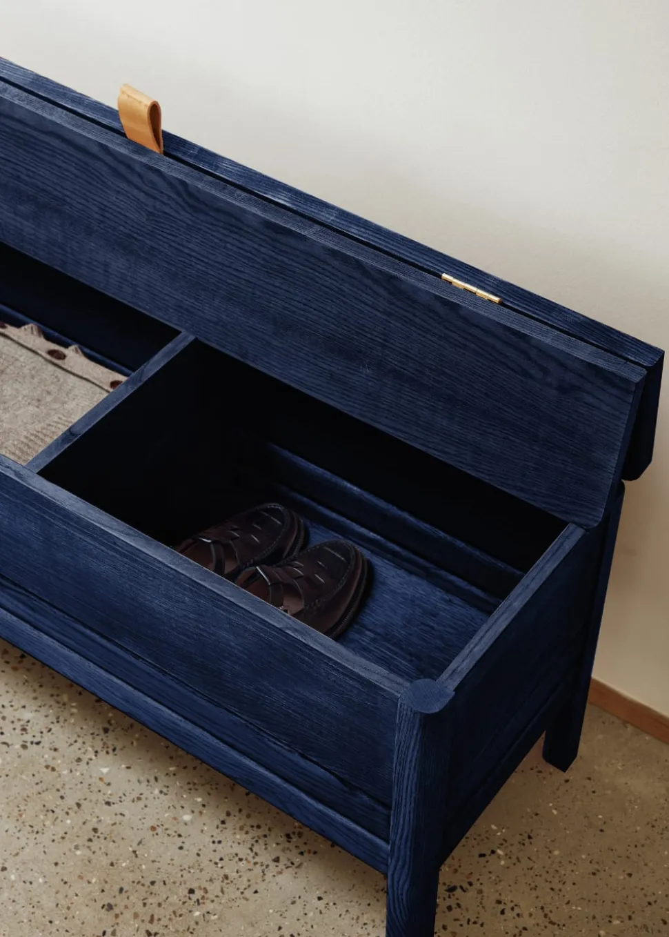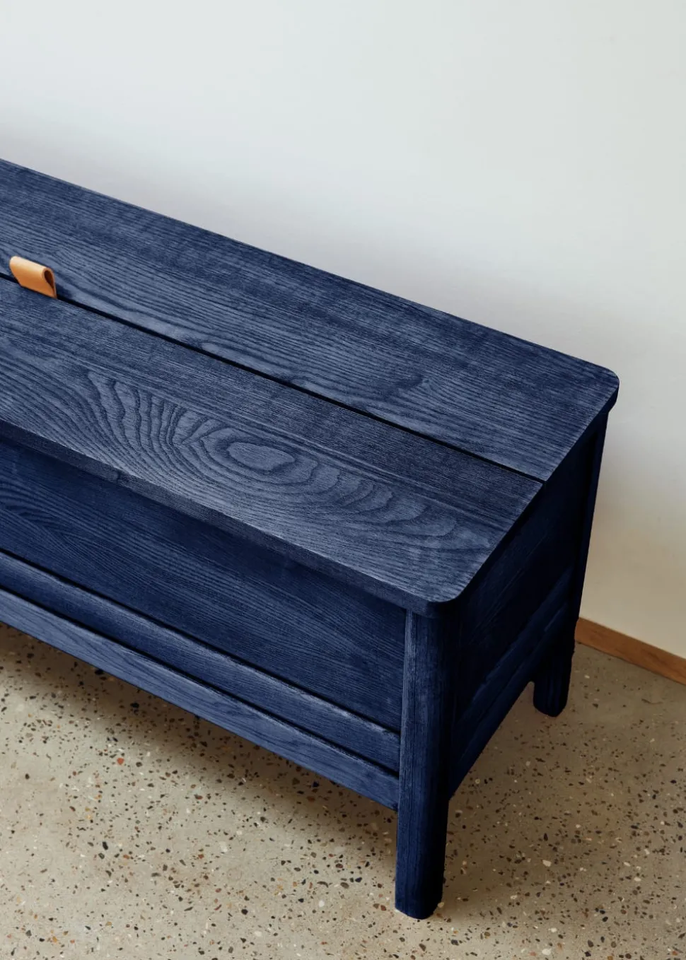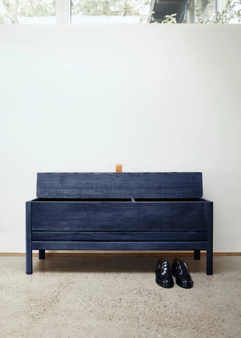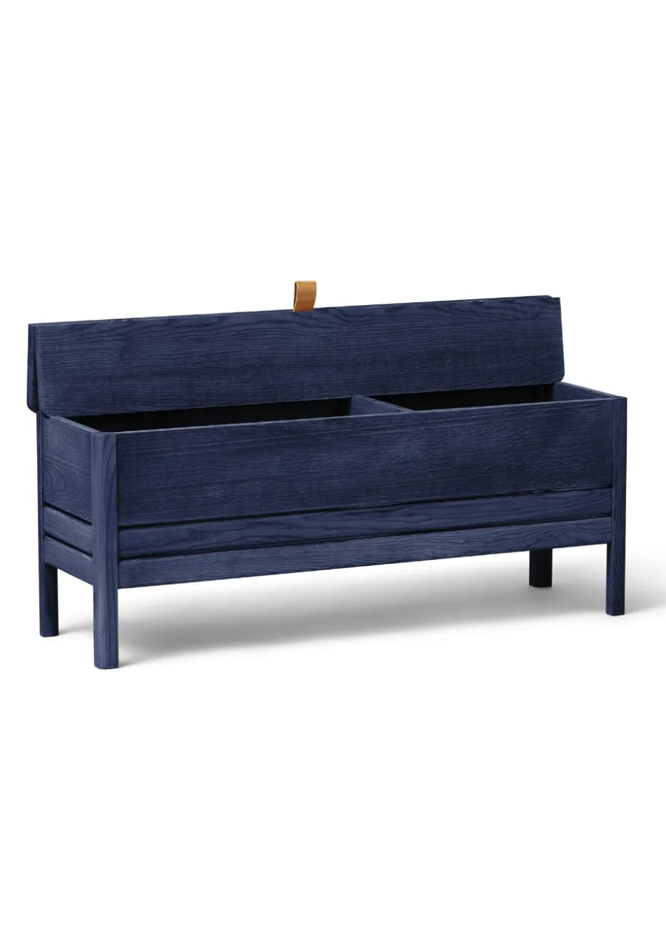 Eine aktualisierte Version der klassischen Entsorgungsbank, bei der Funktionalität auf reine Form trifft. Eine solide und vielseitige Bank mit leichteren, leicht reduzierten Abmessungen und minimalistischer Einstellung. Sie ist praktisch mit einer großen Ablagefläche – bestehend aus zwei separaten Fächern. Der Deckel wird über einen kleinen Ledergriff angehoben, und die Konstruktion hält den Deckel während der Benutzung fest in Position. Der untere Schnitt an den beiden Beinen und den Winkeln gibt ihr das Gefühl, angehoben zu werden, während die Gesamtkonstruktion solide und robust ist. Eine vielseitige Bank, entweder als Einzelstück im Flur, im Schlafzimmer oder in jedem Sitzbereich. Geliefert in Eiche und schwarz gebeizter Eiche.