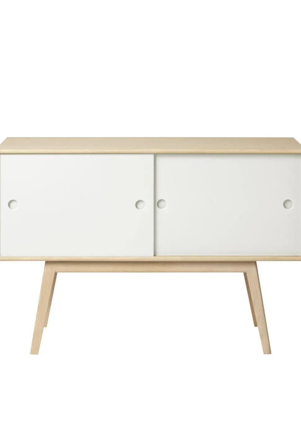 Das Butler Sideboard, entworfen von Foersom & Hiort-Lorenzen, ist die neue Interpretation des klassischen Sideboards von FDB Furniture. Die praktischen Schiebetüren und das minimalistische Design stehen für Funktionalität und nordisches Design. Das Sideboard ist perfekt für den schicken Service im Esszimmer oder als Fernseher im Wohnzimmer mit Platz für verschiedene Elektronik in den Schränken.