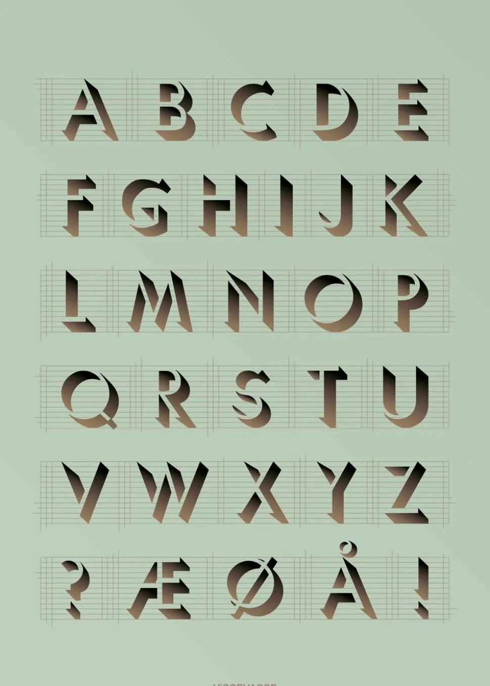 Dies ist das dänische ABC-Poster. TADAAAAAA….. Wir lieben Briefe in Dänemark und haben unsere eigenen lustigen und schönen Briefe. In Skandinavien reicht es nicht aus, ein Thema von A bis Z zu behandeln. Wir gehen an Z vorbei, um Æ, Ø und Å einzubeziehen. Tatsächlich hat Dänemark das markante Å erst vor weniger als 70 Jahren erworben, als es das Doppel-A (AA) ersetzte. Auch nach der typografischen Überarbeitung blieb er der erste Buchstabe in unserem Alphabet bis 1955, als er an seine heutige Position als letzter verschoben wurde.