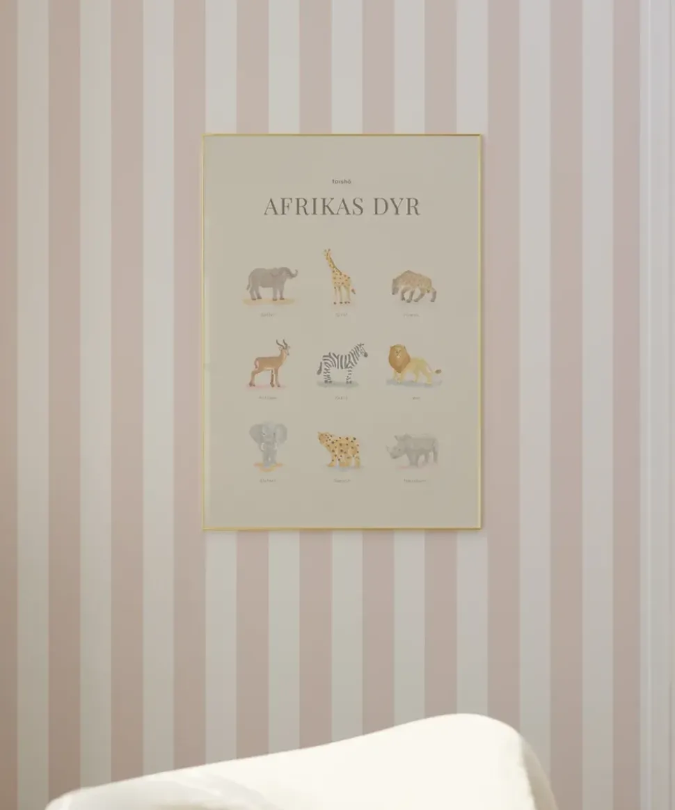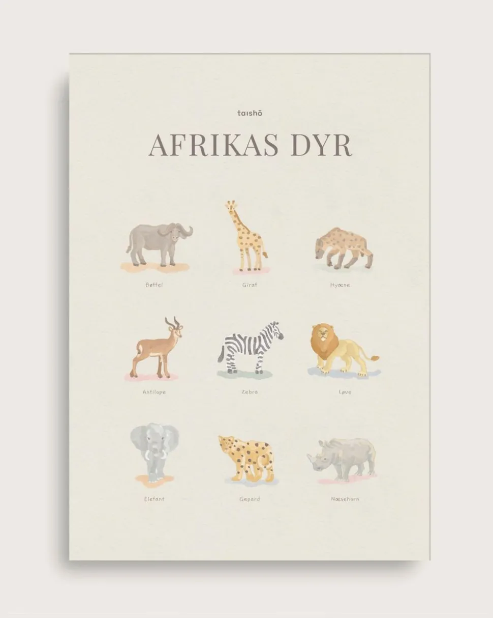 Afrikas Tiere“ von , ist ein niedliches Kinderposter mit Afrikas schönen Tieren. Das Poster zeigt kleine Illustrationen von sechs verschiedenen spannenden Tieren, die in der afrikanischen Savanne leben. Die Bilder regen zum Dialog, zum Spielen und zum Lernen an.