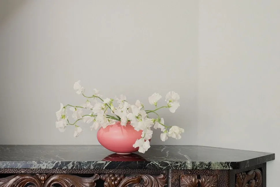Obwohl die Vase Alev nur dezent in Erscheinung tritt, strahlt sie einen unentrinnbaren Reichtum aus, der jeden Raum elegant ausfüllen kann. Kombinieren Sie sie mit passenden oder kontrastierenden Objekten aus den Kollektionen Alev oder Strøm von , oder kombinieren Sie sie mit einer breiten Palette verschiedener Vasen, um einen anspruchsvollen, zeitgenössischen Look zu kreieren.