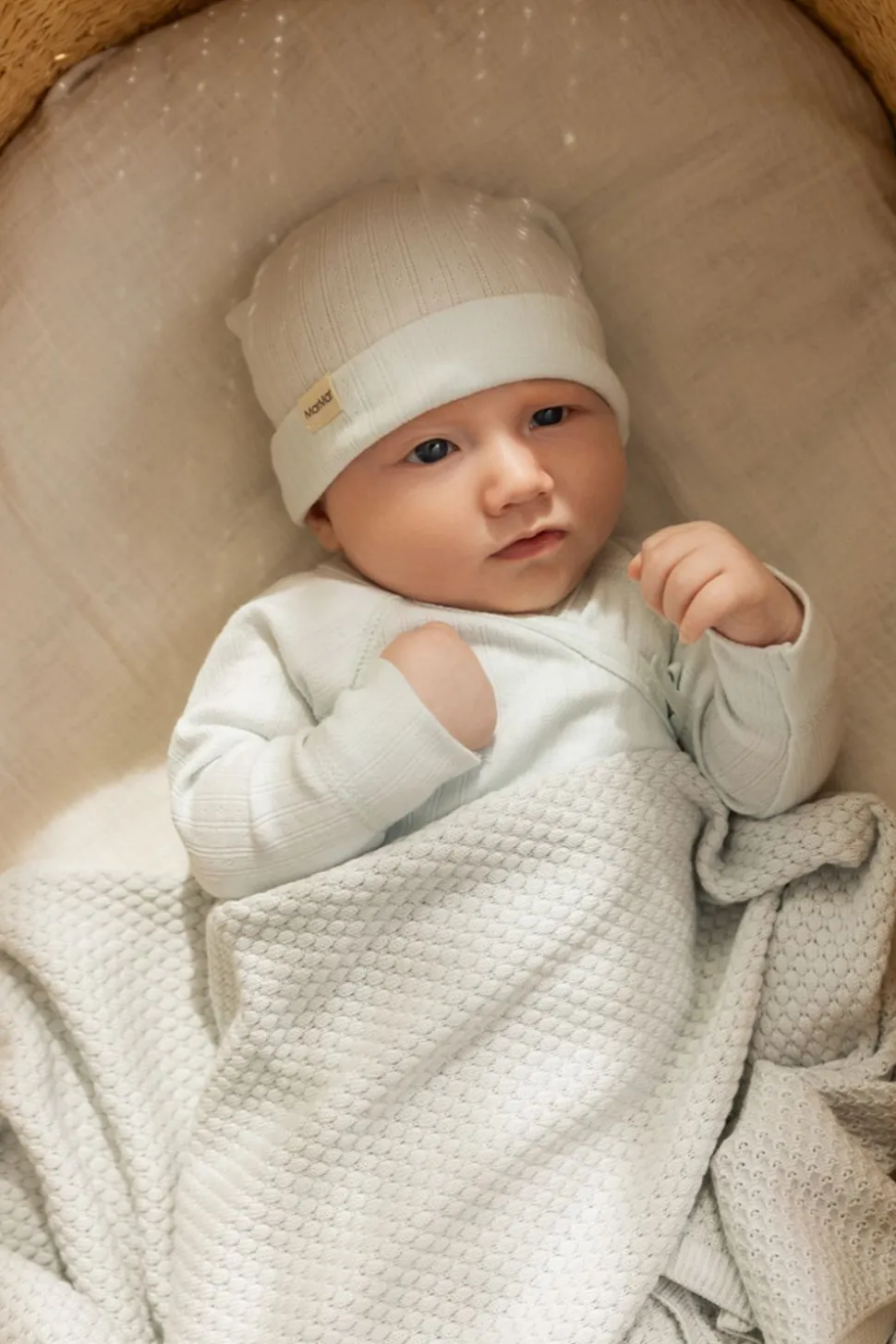 Alia von MarMar ist eine wunderbare Decke aus der weichsten Modalmischung mit einem einzigartigen Bienenstockmuster. Das leichte und atmungsaktive Material fühlt sich auf Babys Haut wie ein Traum an und bietet volle Bewegungsfreiheit. Die zarte Textur und die sorgfältig ausgewählten Details machen sie zu einem Lieblingsstück.