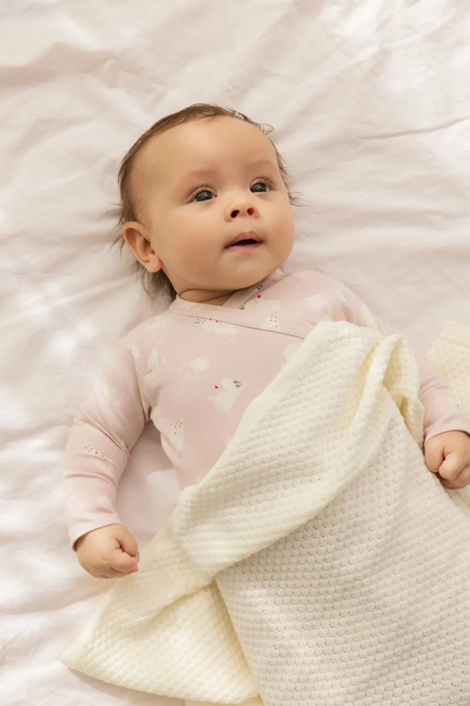 Alia von MarMar ist eine wunderbare Decke aus der weichsten Modalmischung mit einem einzigartigen Bienenstockmuster. Das leichte und atmungsaktive Material fühlt sich auf Babys Haut wie ein Traum an und bietet volle Bewegungsfreiheit. Die zarte Textur und die sorgfältig ausgewählten Details machen sie zu einem Lieblingsstück.
