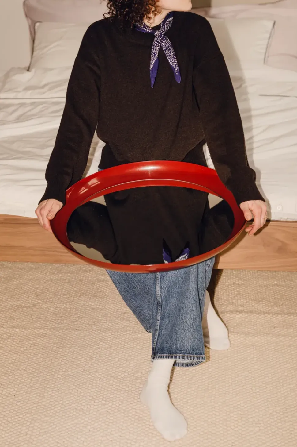 Der von Anna Pietkun, Damian Goliński, Zuza Telka und Kamila Wolska entworfene Allo Mirror von ist ein eleganter Wandspiegel mit einem stromlinienförmigen Rahmen, der jedem Raum eine raffinierte Ästhetik verleiht. Sein minimalistisches Design verbindet Funktionalität mit skulpturaler Schönheit, während die sorgfältig ausgewählten Materialien sowohl Langlebigkeit als auch ein leichtes, modernes Aussehen gewährleisten.