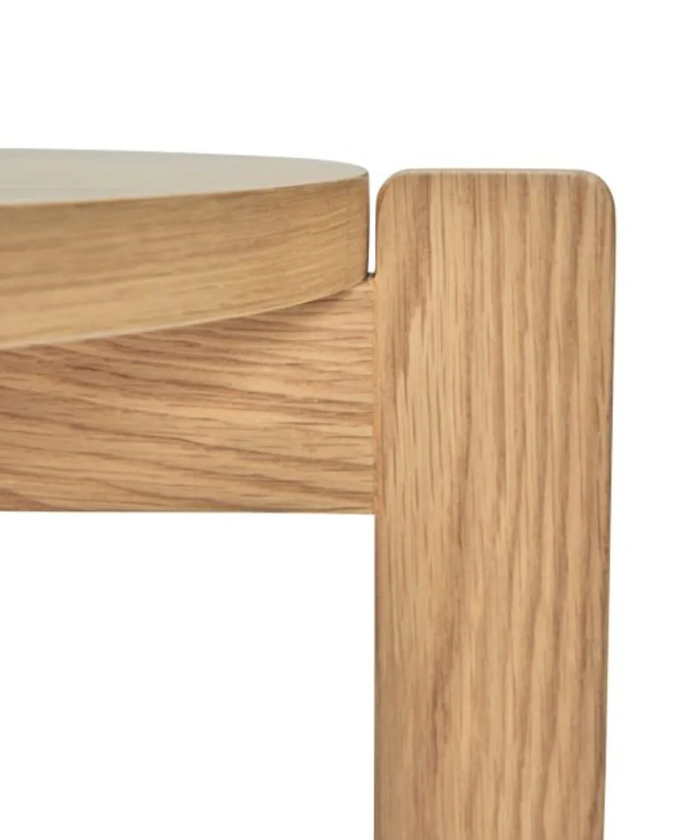 Schöner Eichenhocker von . Kombinieren Sie ihn mit anderen Stühlen um Ihren Esstisch für einen verspielten Look oder lassen Sie ihn für einen natürlichen Look stehen. Wenn Sie ihn auf kreative und einzigartige Weise verwenden möchten, wäre er auch ideal als kleiner Nachttisch oder Beistelltisch.