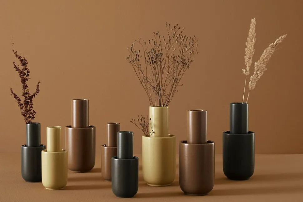 Die Amel Vasen sind ein Entwurf von Aurélien Barbry. Die Vasen werden konstruiert, indem zwei unterschiedlich große Rohre übereinander gestapelt werden. So entstehen zwei Fächer, die für die Präsentation von Blumen und Zweigen genutzt werden können. Das Design ist minimalistisch, was perfekt für eine Vase ist, bei der auch die Blumen ein wichtiger Blickpunkt sind. Mit dieser einzigartigen und funktionalen Vase hat der Designer die Idee einer einfachen Vase in Frage gestellt und sie erneuert.