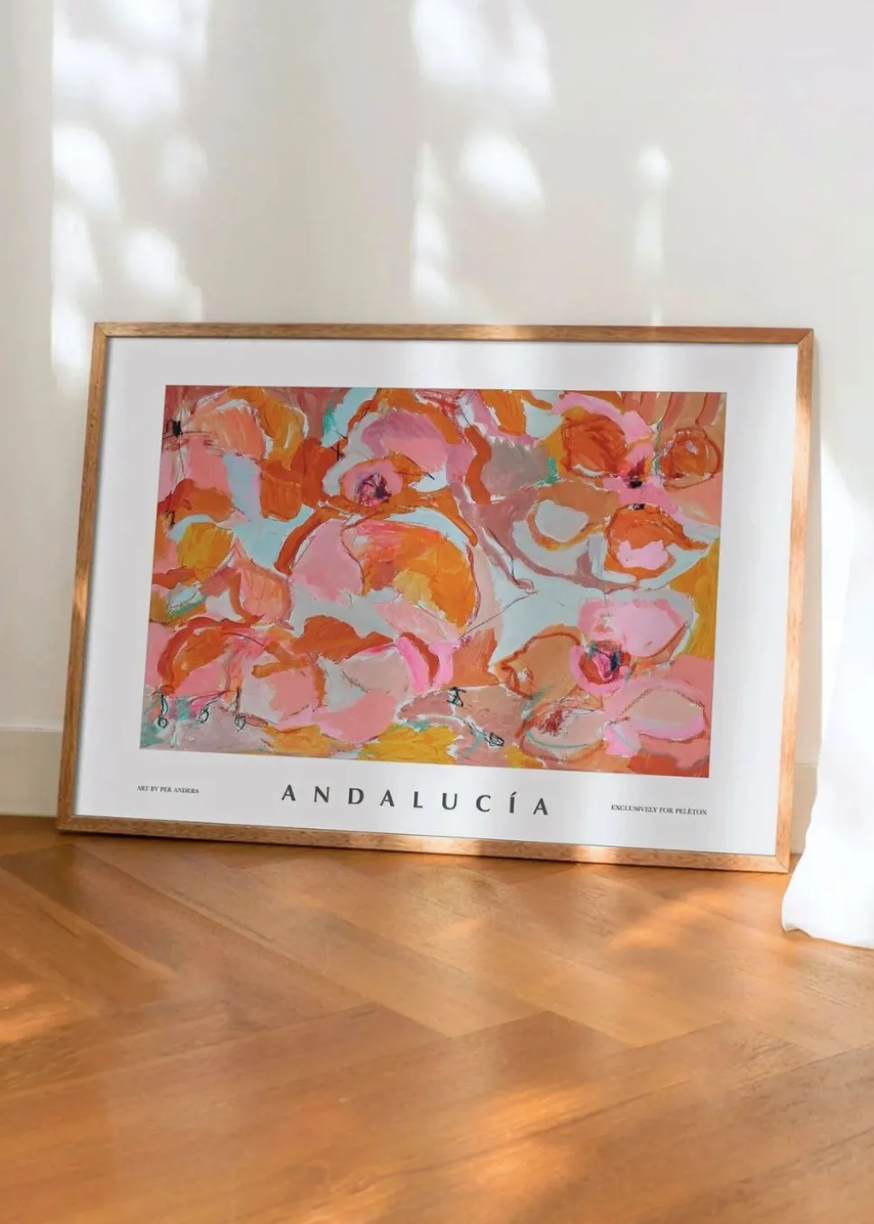 ANDALUCIA wurde von dem Künstler Per Anders entworfen. Das Plakat ist farbenfroh und hat viele feine Details. Seine Farbtöne sind warm und schaffen eine ruhige und gemütliche Atmosphäre. Das Motiv des Plakats soll viele verschiedene Blumen und den wolkenlosen Himmel im Hintergrund darstellen.