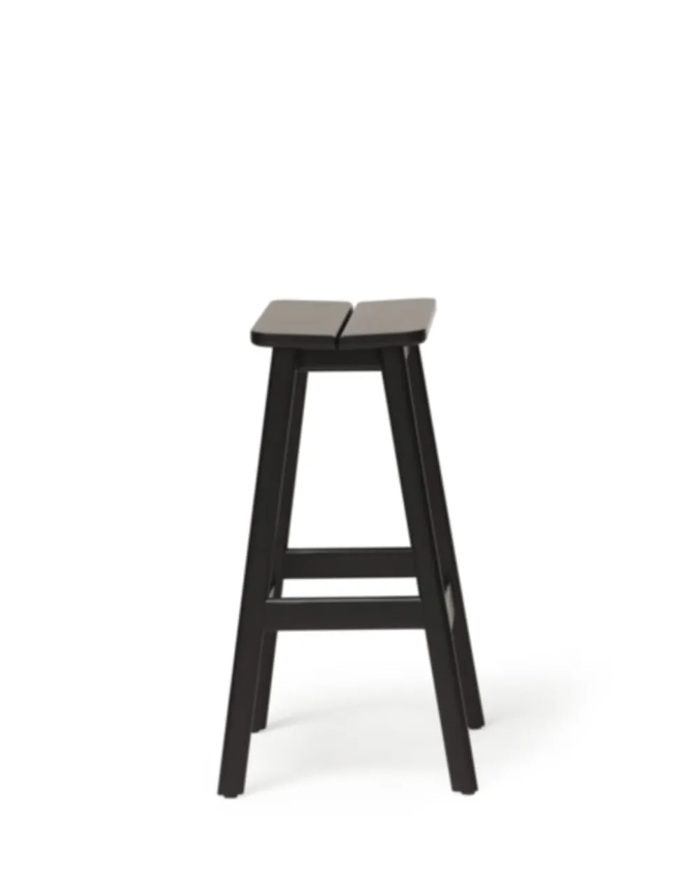 DerAngle Standard Barhocker von Form & Refine hat einen einfachen und eleganten Look mit einer starken geometrischen Form. Er ist aus massivem Buchenholz gefertigt und hat eine schöne Oberfläche, die gut zu einer modernen und minimalistischen Inneneinrichtung passt. Mit seinem schlichten und einfachen Design passt er perfekt in eine Küche, eine Bar oder einen Stehtisch und bietet ein komfortables Sitzerlebnis.