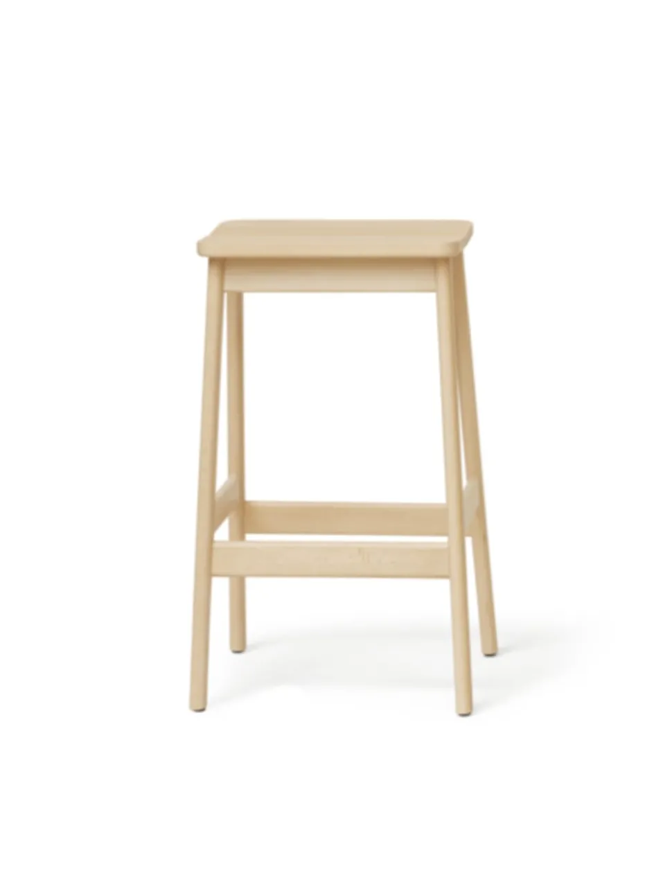 DerAngle Standard Barhocker von Form & Refine hat einen einfachen und eleganten Look mit einer starken geometrischen Form. Er ist aus massivem Buchenholz gefertigt und hat eine schöne Oberfläche, die gut zu einer modernen und minimalistischen Inneneinrichtung passt. Mit seinem schlichten und einfachen Design passt er perfekt in eine Küche, eine Bar oder einen Stehtisch und bietet ein komfortables Sitzerlebnis.