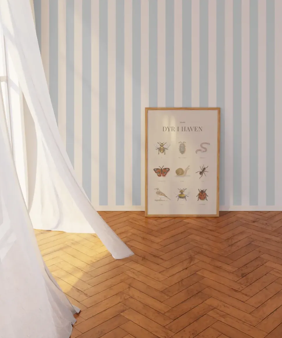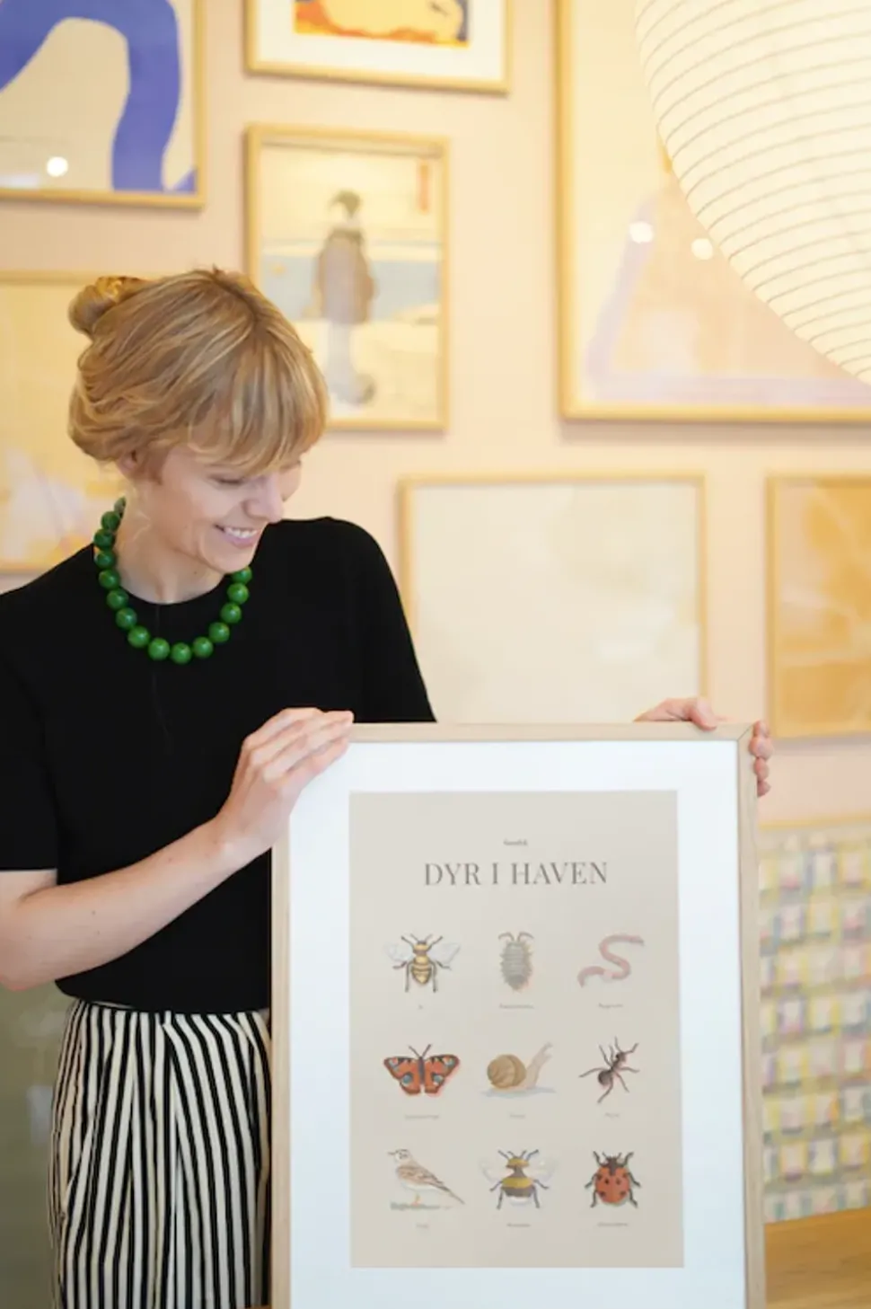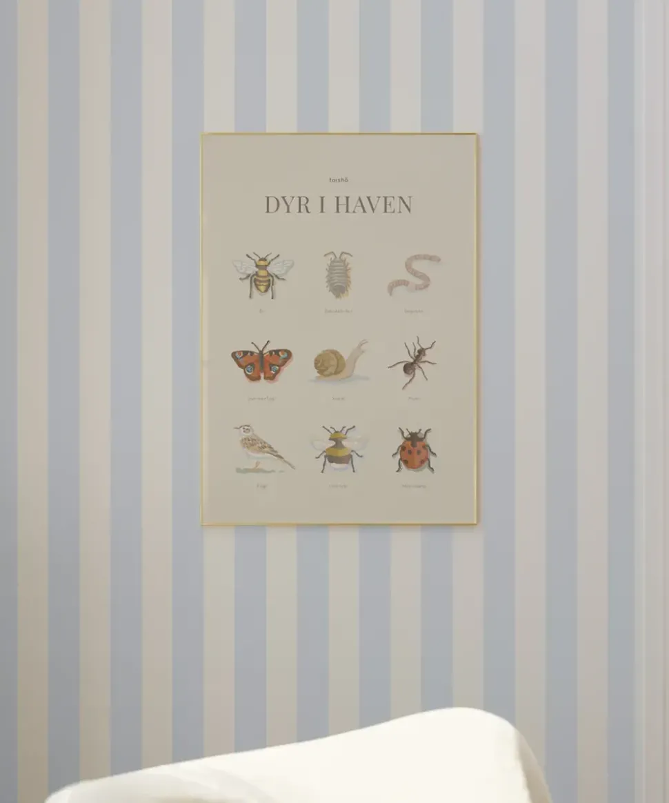 Tiere im Garten“ von , ist ein niedliches Kinderposter mit Gartentieren. Auf dem Poster finden Sie kleine Abbildungen von sechs verschiedenen Tieren, die in den dänischen Gärten zu finden sind. Die Bilder regen zum Dialog, zum Spielen und zum Lernen an.