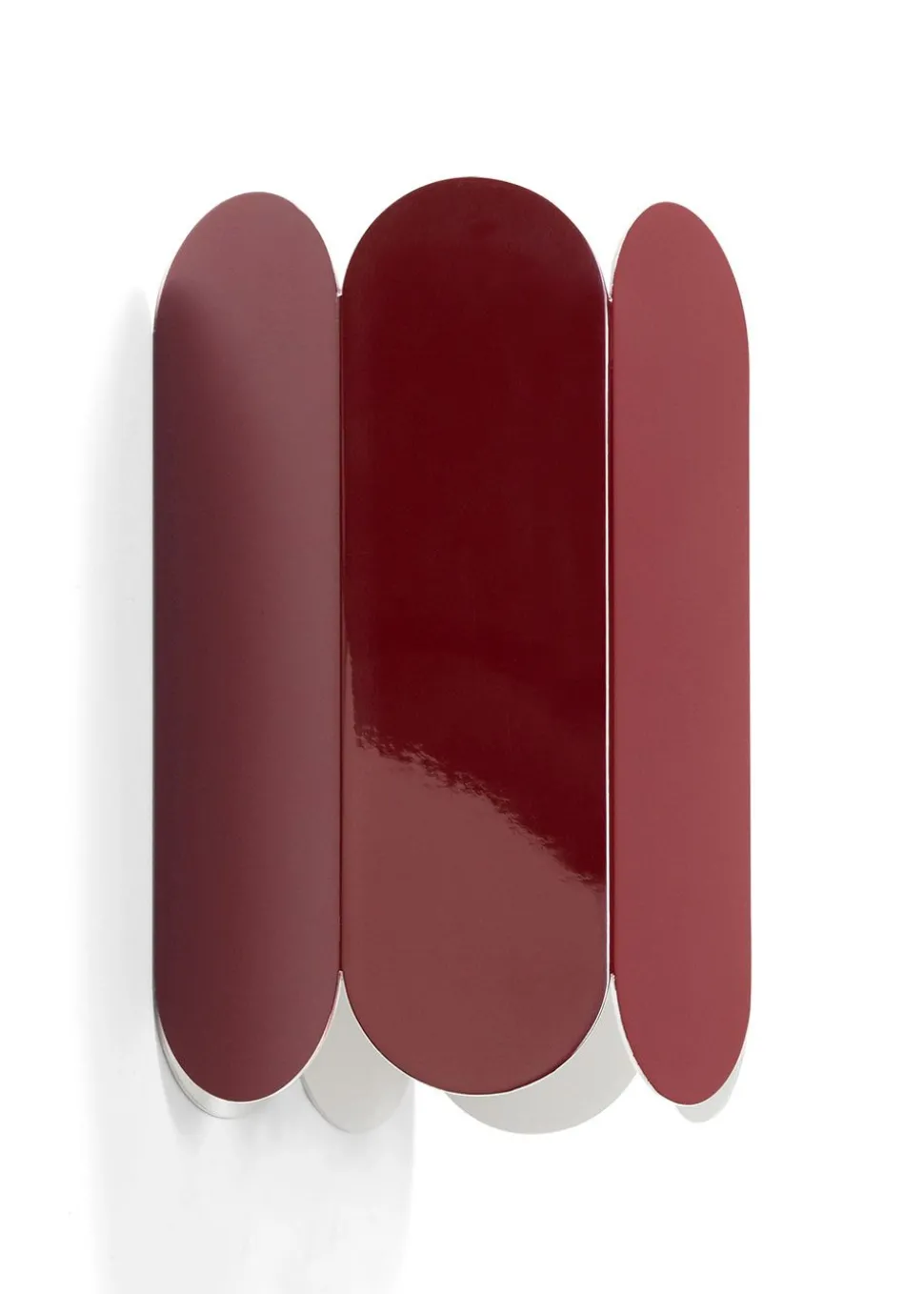 Die Kollektion Arcs wurde vom belgischen Designerduo Muller Van Severen entworfen, das für seine skulpturalen und farbenfrohen Entwürfe bekannt ist, die oft von architektonischen Elementen inspiriert sind. Die Serie zeichnet sich durch ihre einzigartige Komposition aus säulenförmigen Ovalen aus, die vertikal zu einer geometrischen Skulptur zusammengesetzt sind. Diese Figur findet sich in Form von Vasen, Kerzenhaltern und Lampen wieder, die zusammen einen schönen roten Faden in der Wohnung bilden können.