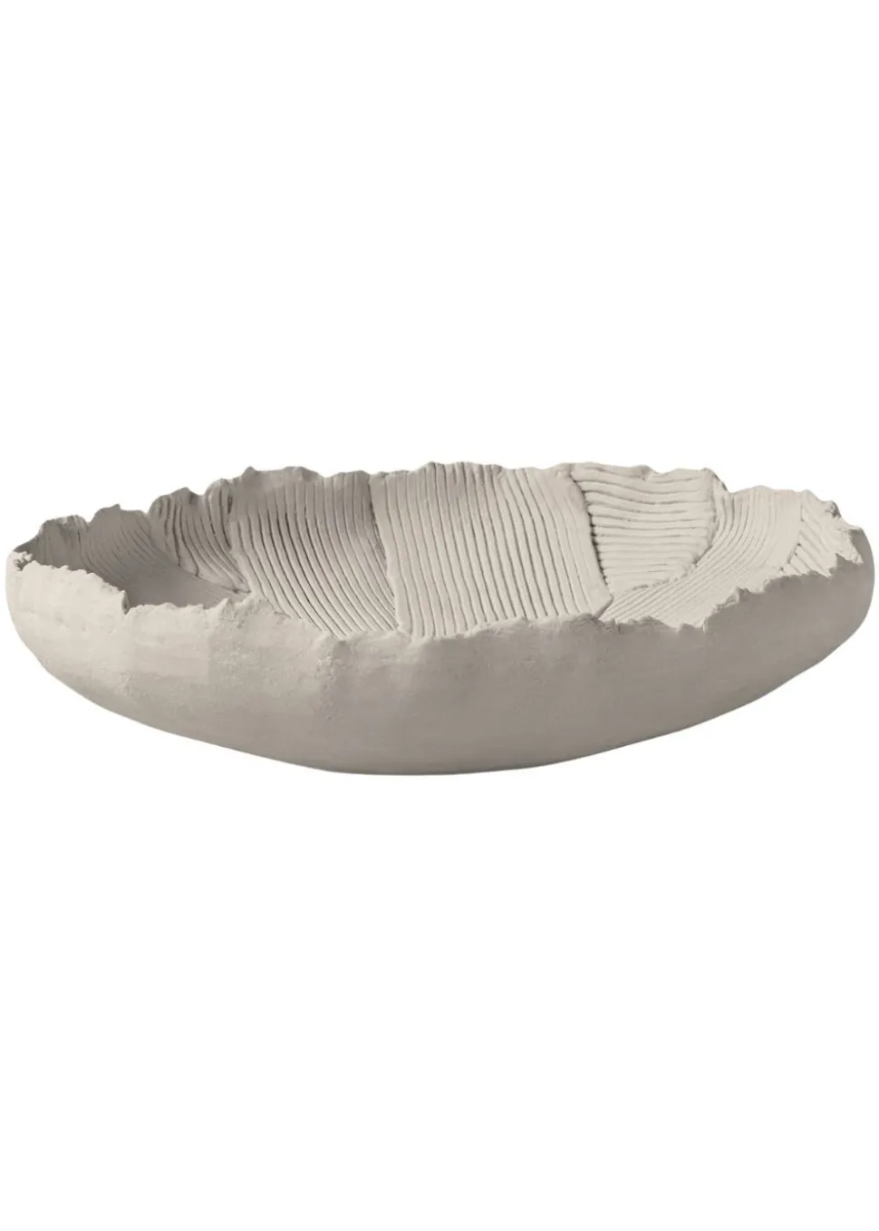 Die Schale hat eine runde Form mit einzigartigen Texturen, die die Schale zu einem lebendigen, ansprechenden und einzigartigen Stück machen. Ihr scharfkantiges und raues Design verleiht ihr Charakter und einen zusätzlichen Hauch von Eleganz. Die Schale ist daher unverzichtbar für eine Dinnerparty. Die Schale ist ein schönes und funktionelles Kunstwerk, das einem Raum Persönlichkeit verleiht.
