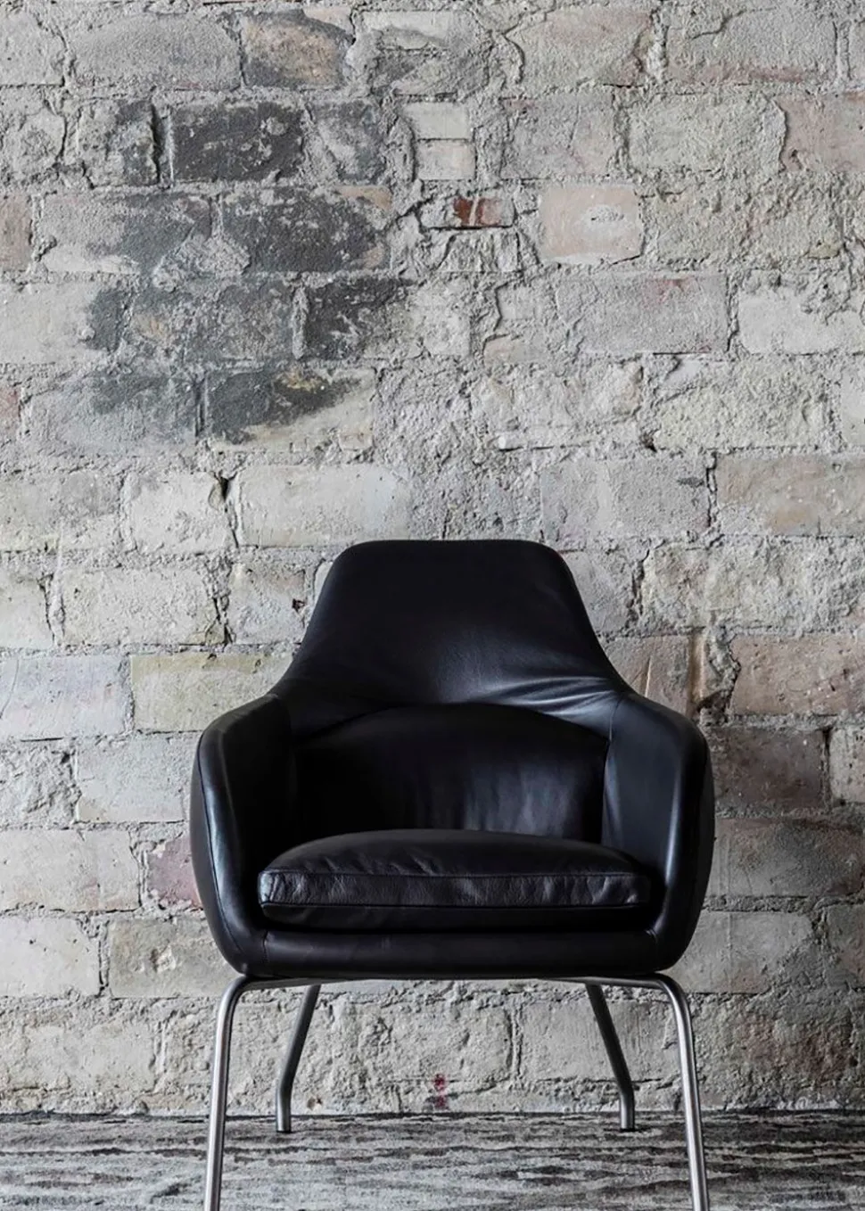 Asento wird von hergestellt. Die Polsterung des Stuhls ist außen fest und innen weich. Dies verleiht dem Design Leichtigkeit und bietet eine komfortable Lendenwirbelstütze. Das Gestell ist entweder aus schwarz pulverbeschichtetem Stahl oder aus gebürstetem Edelstahl erhältlich.