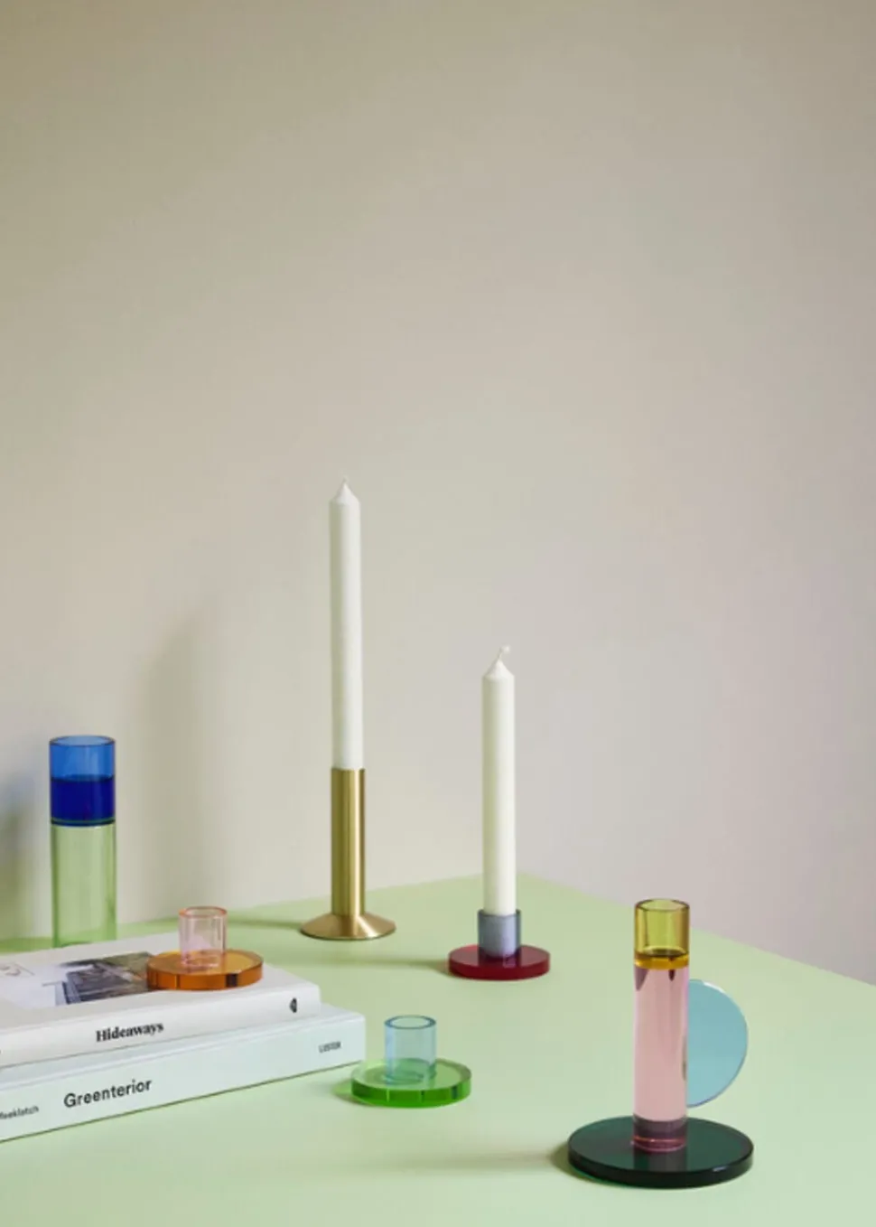 Feine Kerzenständer in den schönsten Farben, alle aus Kristallen gefertigt. Diese Kerzenhalter haben jeweils eine eigene Farbe an der Ober- und Unterseite. Die Kerzenständer schmücken jedes Haus mit ihren schönen Farben und ihrer einzigartigen Form.
