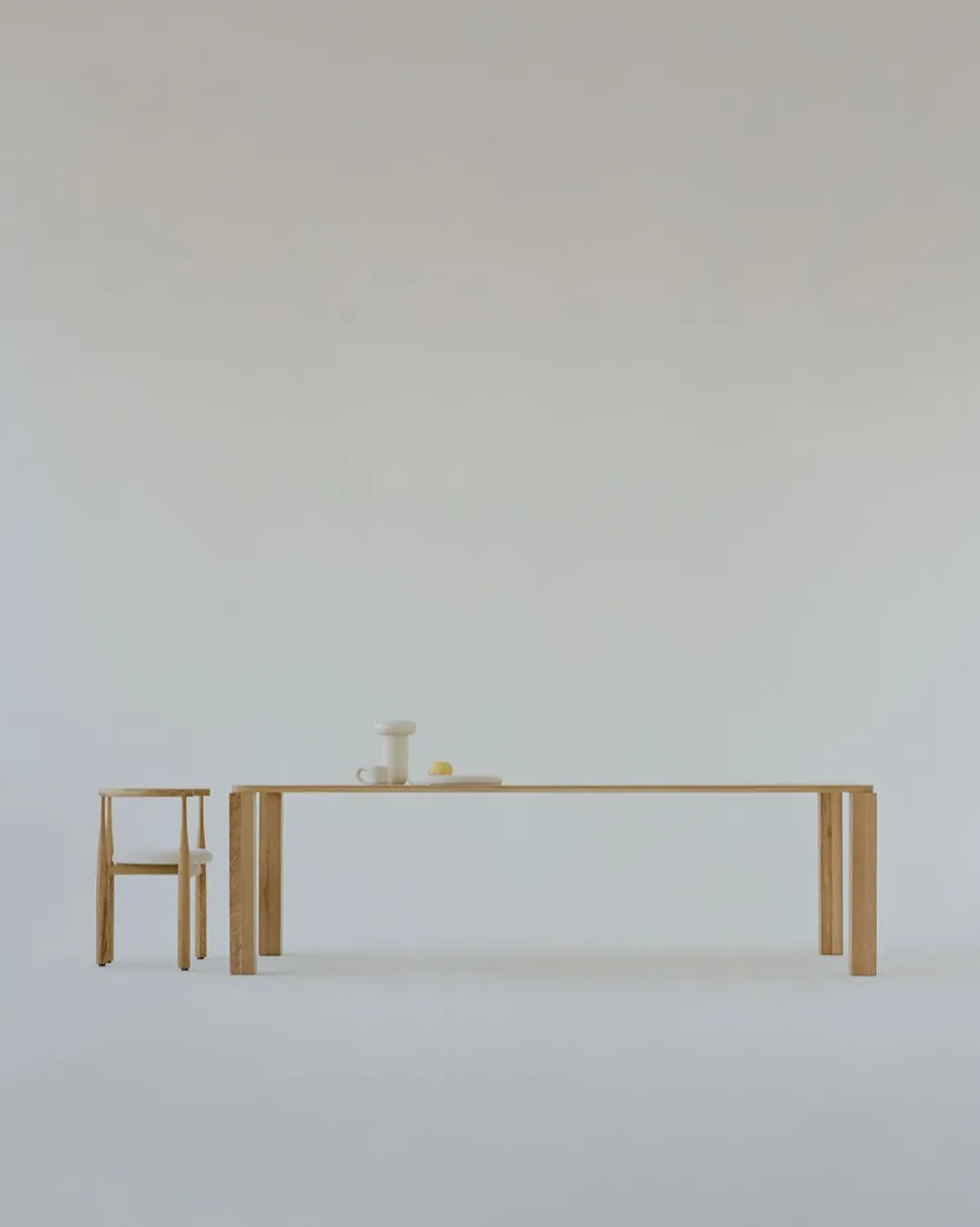Die Designphilosophie von Atlas beruht auf dem Zusammenspiel und dem Kontrast zwischen den Beinen und der Tischplatte, wobei jedes Element das andere verstärkt, was zu einer unverwechselbaren und von Natur aus brutalistischen Ästhetik führt. Astbury hat sich von der Architekturgeschichte inspirieren lassen, die die Erinnerung an Säulengänge und Kolonnaden wachruft, wobei die grundlegende Struktur von Säulen und Balken beibehalten wurde. Die Verbindung einfacher geometrischer Formen – Kreis und Quadrat – schafft eine Komposition von bemerkenswertem Charakter.