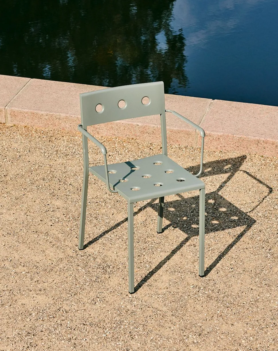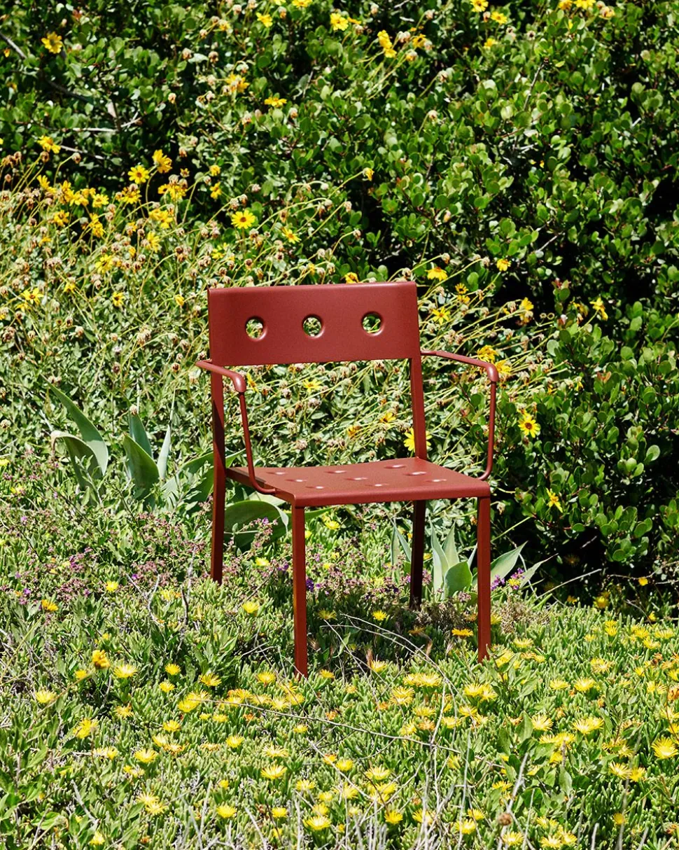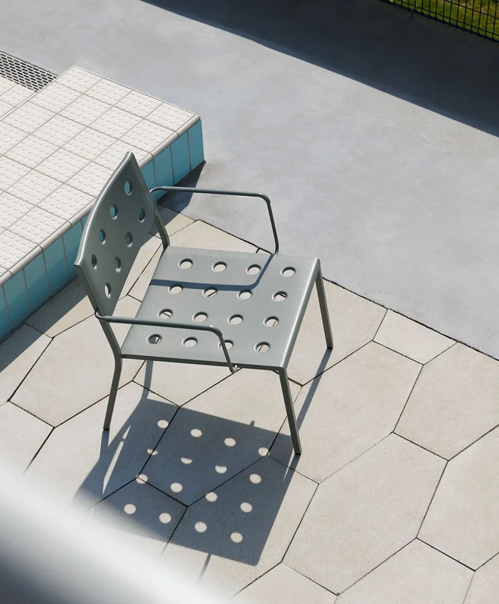 Balcony Armchair, entworfen von Ronan & Erwan Bouroullec, ist Teil der Balcony Serie von . Balcony zeichnet sich durch sein elegantes und strenges Design in Verbindung mit den kreisförmigen Löchern in Sitz und Rückenlehne aus und ist ein wesentlicher Bestandteil des Outdoor-Universums von . Die Möbel sind aus pulverbeschichtetem Stahl gefertigt, der für eine dauerhafte, wind- und wetterfeste Oberfläche sorgt.