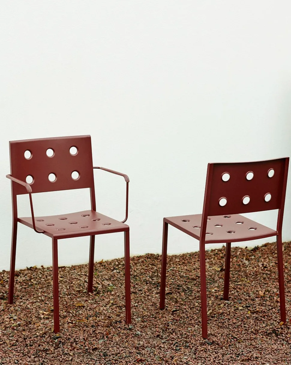 DerBalcony Dining Chair, entworfen von Ronan & Erwan Bouroullec, ist Teil der Balcony Serie von . Balcony zeichnet sich durch sein elegantes und strenges Design in Verbindung mit den runden Löchern in Sitz und Rückenlehne aus und ist ein wesentlicher Bestandteil des HAY-Universums für den Außenbereich. Die Möbel sind aus pulverbeschichtetem Stahl gefertigt, der für eine dauerhafte, wind- und wetterfeste Oberfläche sorgt.