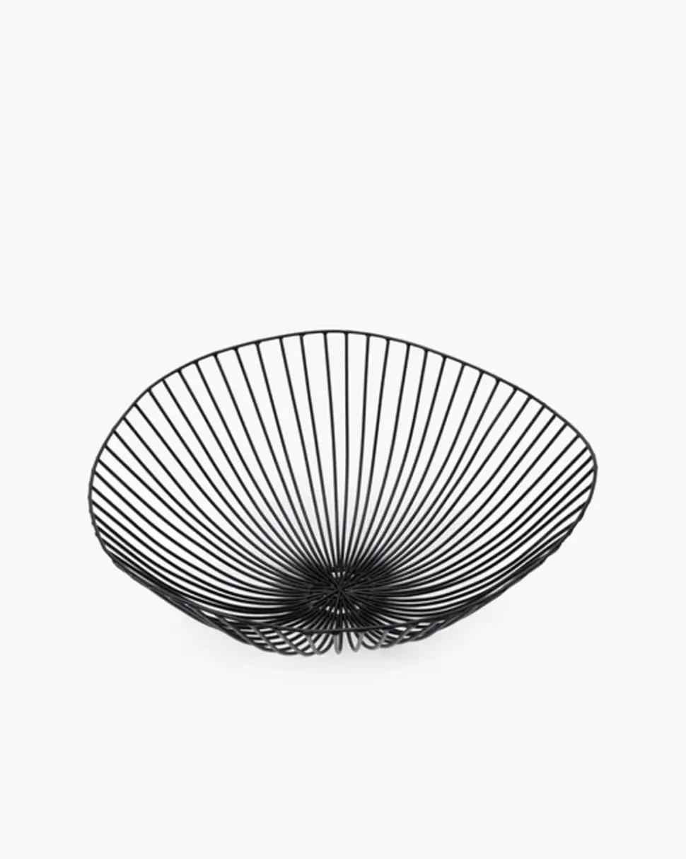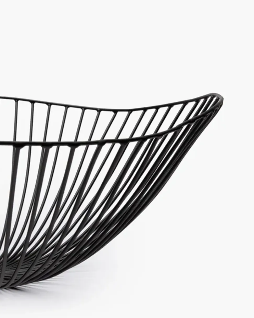 Der von Antonino Sciortino entworfene Korb Cesira von strahlt mit seiner einfachen und luftigen Struktur eine zeitlose Eleganz aus. Der dekorative Drahtkorb aus schwarz lackiertem Eisen, der von Hand fein bearbeitet wurde, ist robust und leicht zugleich. Die subtilen Unregelmäßigkeiten in der Verarbeitung verleihen ihm eine charmante Authentizität, die jeden Korb einzigartig und charaktervoll macht.