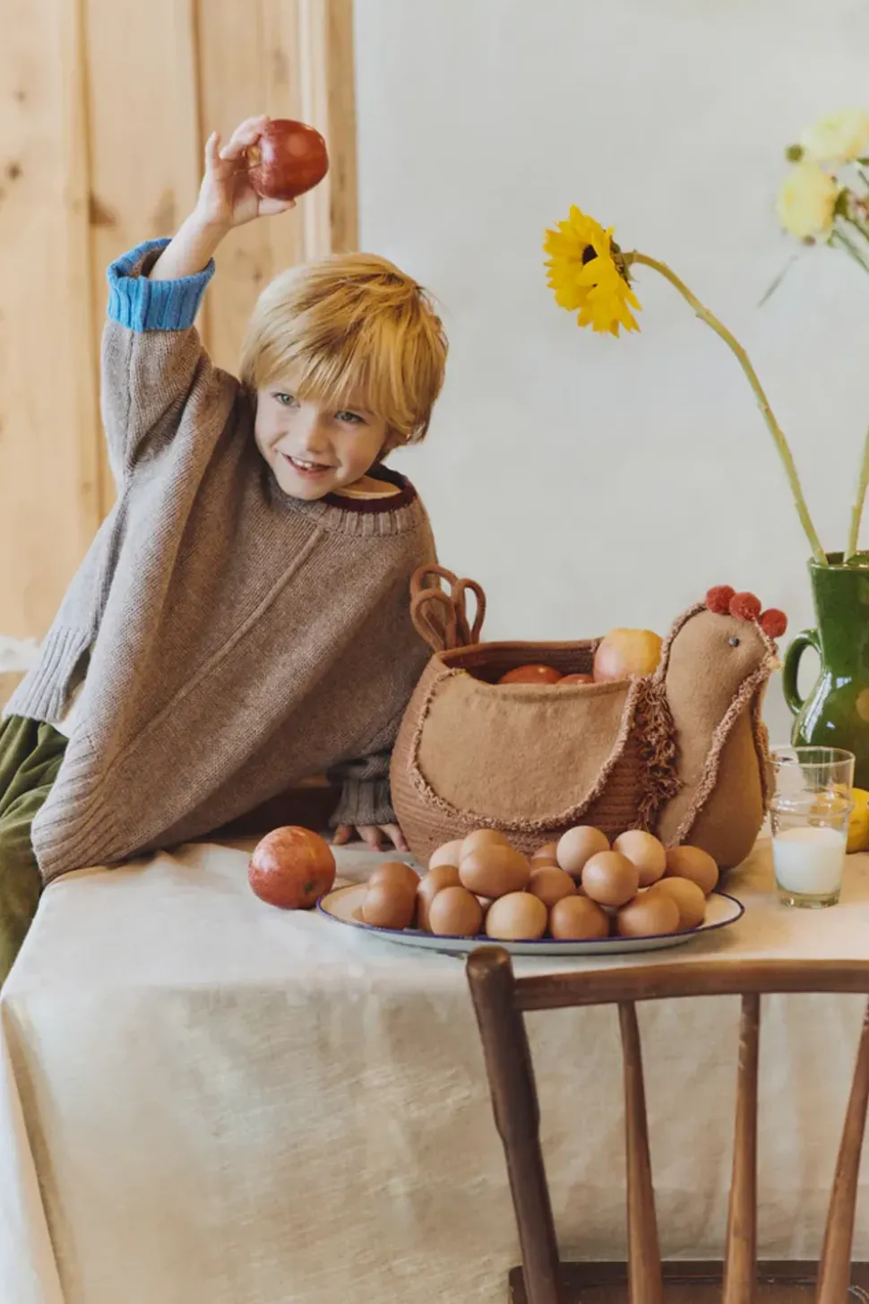 Der Korb eignet sich perfekt für die Aufbewahrung von Spielzeug, Decken oder kleinen Gegenständen und passt sowohl ins Kinderzimmer als auch in gemütliche Ecken des Wohnzimmers. Kombinieren Sie ihn mit anderen von der Natur inspirierten Elementen wie Decken und Kissen, um eine warme, entspannte Atmosphäre zu schaffen, oder verwenden Sie ihn als stilvollen Blickfang in minimalistischen Umgebungen.