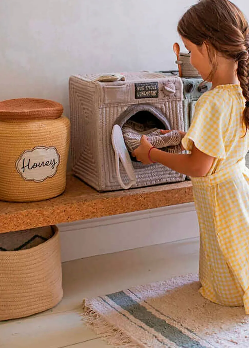Der Korb Gram von ist ein dekorativer und praktischer Aufbewahrungskorb. Der Korb ist Teil der Serie Little Chefs. Der Korb ist aus geflochtenen Baumwollschnüren aus recycelten PET-Flaschen handgefertigt. Stellen Sie den Korb im Kinderzimmer auf und verwenden Sie ihn, um die Spielsachen, Bücher, Teddybären, Decken usw. Ihres Kindes zu ordnen. Der Korb kann auch anderswo in der Wohnung aufgestellt werden, z. B. in der Küche oder im Wohnzimmer.