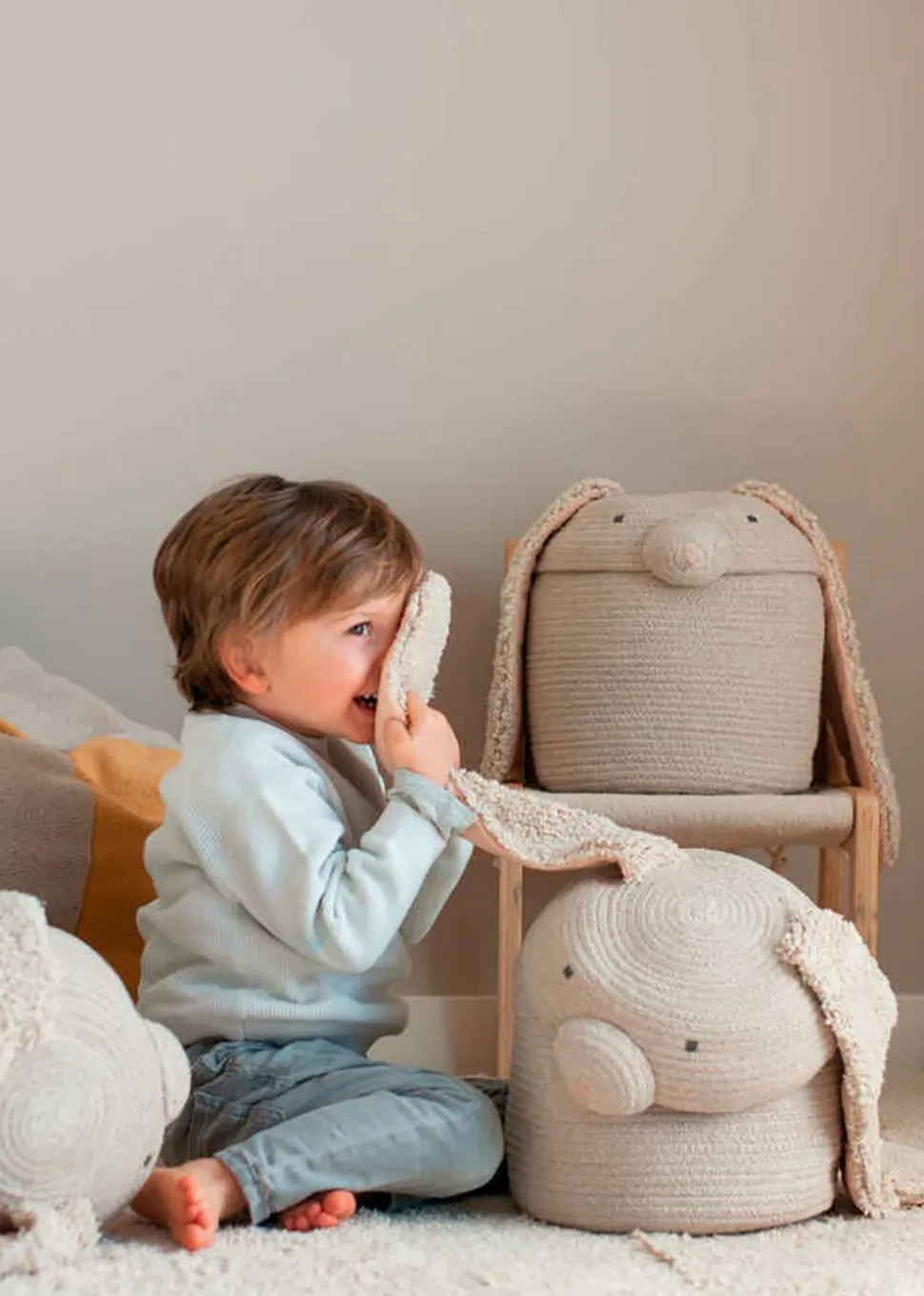 Rita ist nicht nur eine praktische Aufbewahrungslösung, sondern auch eine lustige und dekorative Ergänzung für das Kinderzimmer. Verwenden Sie ihn zur Aufbewahrung von Kleidung, Spielzeug oder anderen kleinen Gegenständen, oder lassen Sie die Kinder ihn als phantasievollen Hasenfreund für ihr Spiel verwenden.