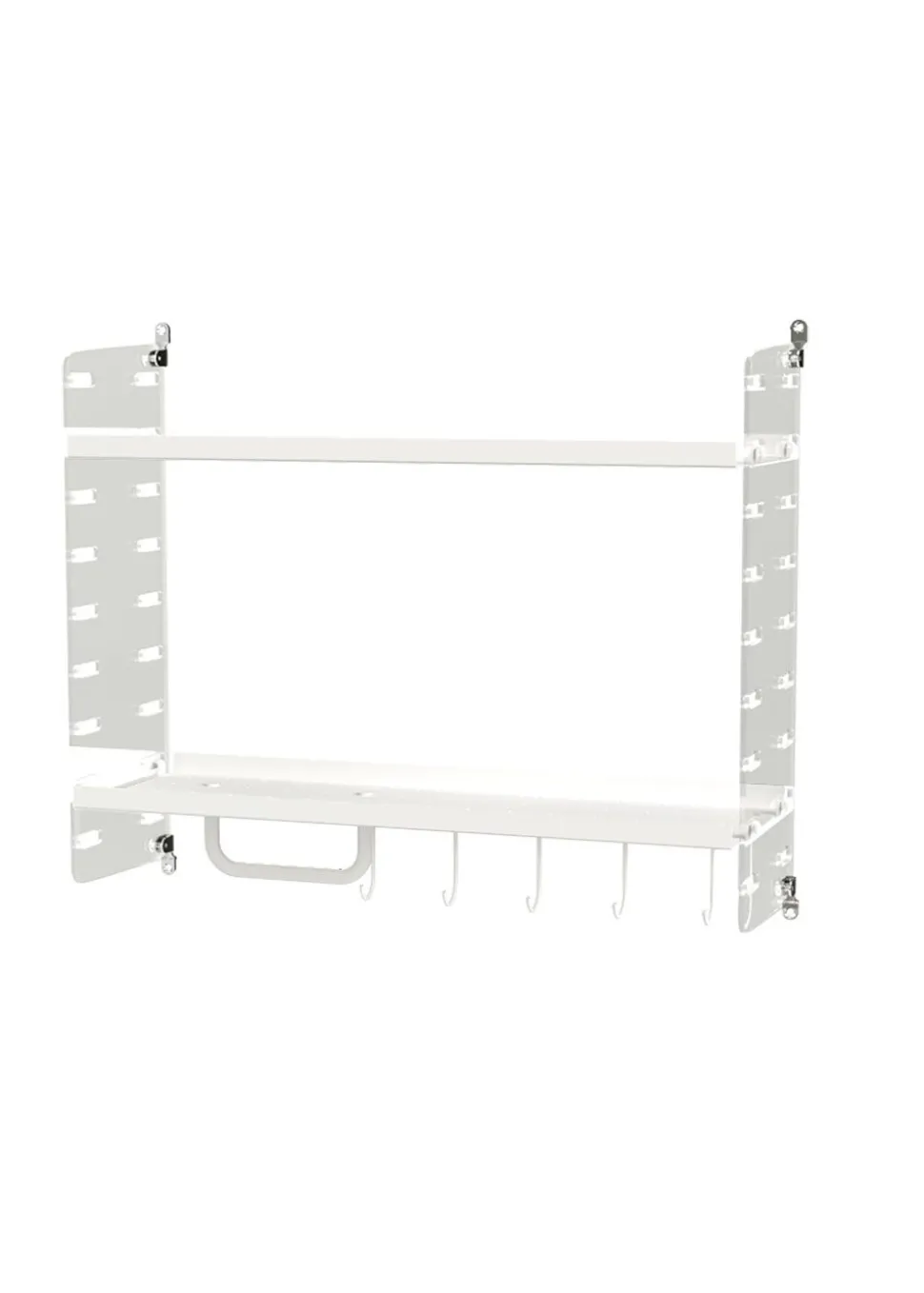- Bestandteile: 1 x 2-Pack Wall Plex Panel h50 x d20 cm | 1 x 5-Pack Metal Hook J | 1 x Rail w24 cm | 2 x Metal Shelf Low b58 x d20 cm.