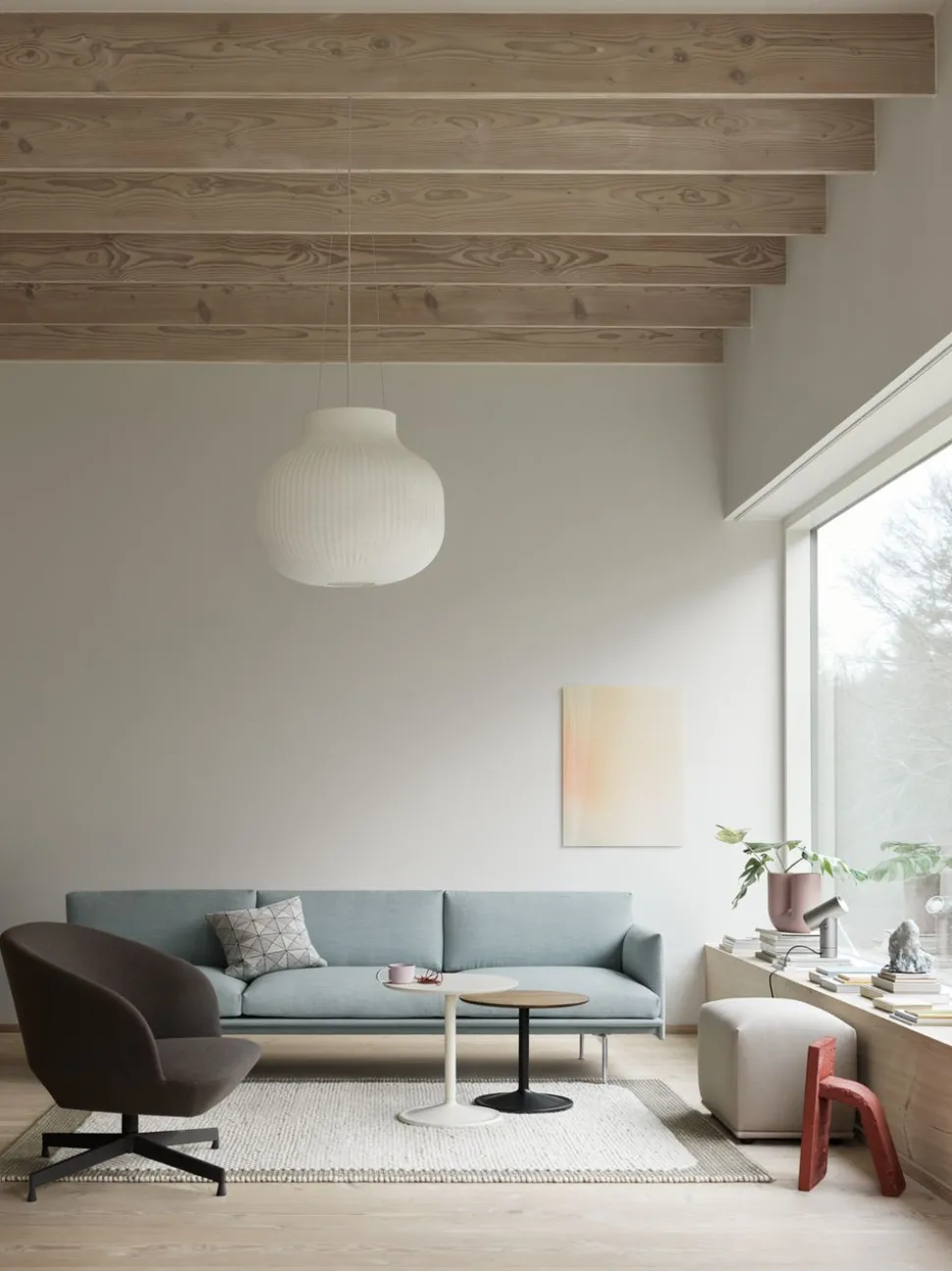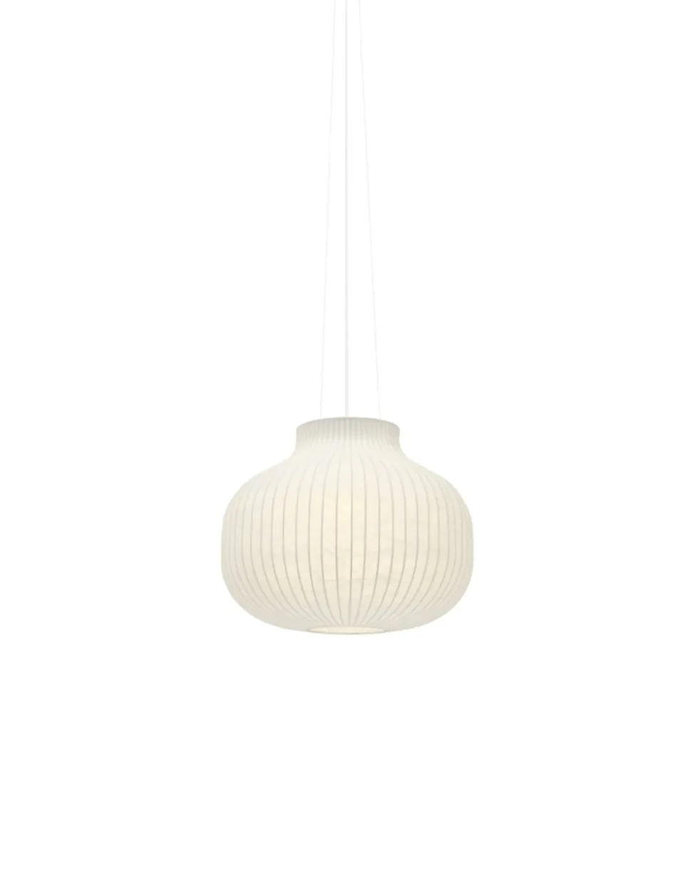 Das gefilterte Licht, das durch das Kokonmaterial dringt, erzeugt einen warmen und angenehmen Schein, während die Strand Pendelleuchte leicht im Raum schwebt und jedem Raum Komfort, Harmonie und raffinierte Sensibilität verleiht.