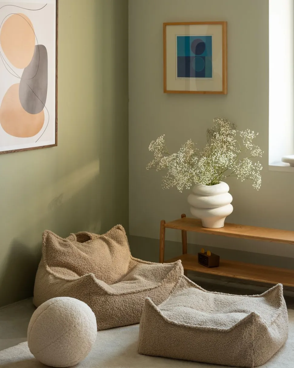 Der vielseitige Beanbag Chair lässt sich in einem Raum leicht mit anderen Wigiwama-Möbeln kombinieren, um eine harmonische und spielerische Atmosphäre zu schaffen. Er kann in Ecken oder als Mittelstück im Raum platziert und mit Decken und Kissen kombiniert werden, um die entspannende Atmosphäre zu unterstützen. Die einladende Form und das weiche Material machen ihn zur perfekten Wahl für Jung und Alt.