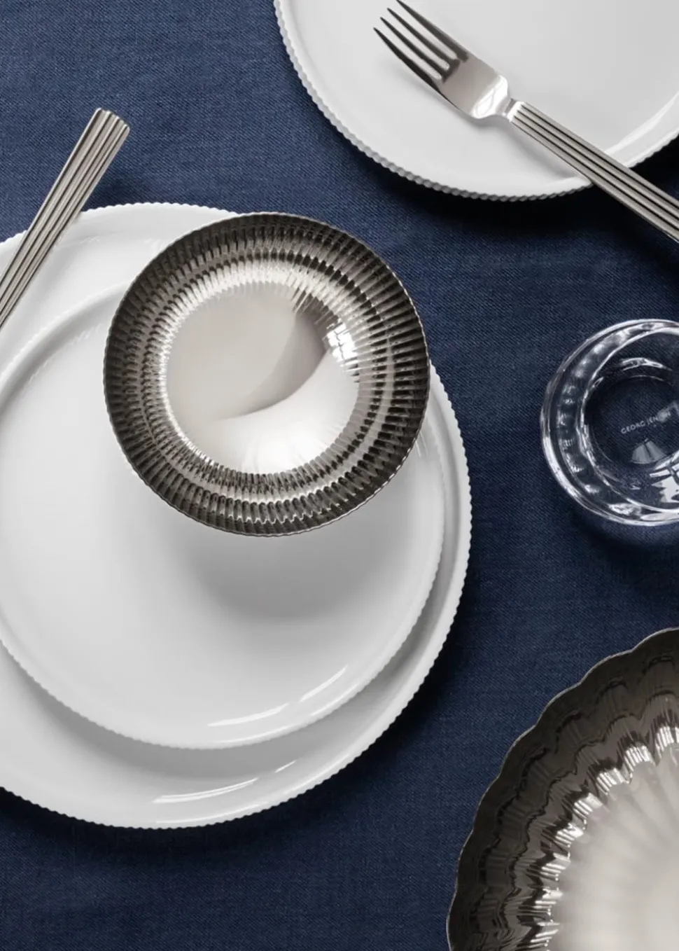 Der Bernadotte Speiseteller von ist ein wahres Meisterwerk des skandinavischen Designs, inspiriert vom legendären Designer Sigvard Bernadotte. Dieses zeitlose Stück verbindet Funktionalität mit anmutiger Ästhetik und präsentiert sich in einer erhabenen, polierten Oberfläche aus hochwertigem Porzellan. Das klassische Rippendesign des Tellers ist eine Hommage an den Stil der 1930er Jahre, während die modernen Rundungen für einen zeitgemäßen und klaren Look sorgen. Die einzigartige Kombination aus historischer Eleganz und modernem Minimalismus macht die Serie Bernadotte zu einer unvergleichlichen Bereicherung für jeden Tisch.