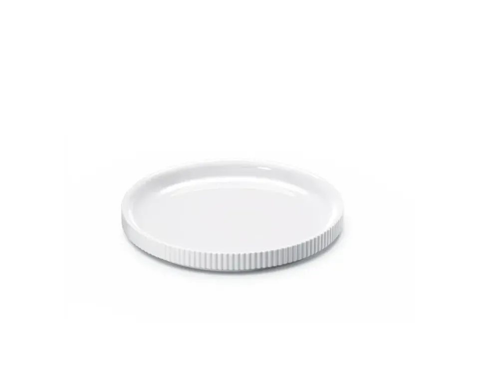 Der Bernadotte Teller 17 cm von , der mit Respekt vor der ikonischen Designsprache von Sigvard Bernadotte entworfen wurde, strahlt zeitlose Eleganz aus. Der Teller ist aus feinem weißen Porzellan gefertigt, dessen charakteristische Rillen einen raffinierten Ausdruck mit modernem Touch schaffen. Jede Linie ist sorgfältig ausgearbeitet und unterstreicht das erhabene Gleichgewicht zwischen klassischem skandinavischem Minimalismus und funktionaler Schönheit. Mit seiner zarten Größe vereint er auf wunderbare Weise Handwerkskunst und Ästhetik.