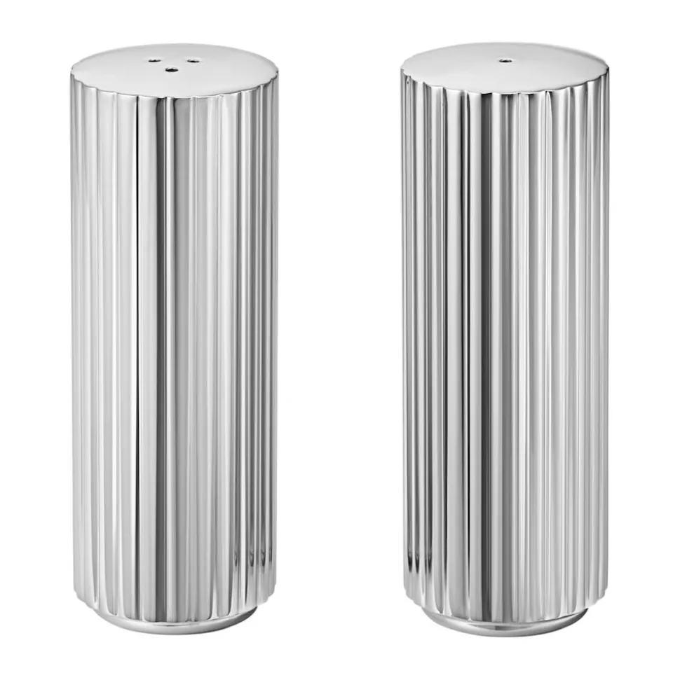 Der Salz- und Pfefferstreuer „Bernadotte“ von , entworfen von dem berühmten Sigvard Bernadotte, ist zweifellos ein kleines, aber stattliches Symbol für klassisches Design und makellose Funktionalität. Diese exquisiten Stücke wurden sorgfältig mit einer reichen Mischung aus Geschichte und Moderne gefertigt und erzählen eine fesselnde Geschichte von zeitloser Eleganz. Edelstahl, perfekt geformt und poliert, zeugt von der Vorliebe des Kenners für dauerhafte Qualität. Die sanften Kurven und die raffinierten, geriffelten Details jedes Shakers sind keine bloßen Designelemente, sondern zarte Einflüsterungen aus einer königlichen Vergangenheit, die nahtlos mit moderner Ästhetik verschmelzen und Ihren Tisch mit einer unvergleichlichen, subtilen Opulenz verschönern.