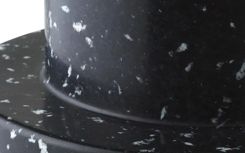 Der sehr straffe Ausdruck des Hockers wird durch eine charakteristische, verpixelte Oberfläche gebrochen, die durch kleine Stücke aus 100% recyceltem Kunststoff aus Industrie und Haushalt entsteht. Ein spezielles Verfahren, bei dem die Kunststofffragmente bis zum Schmelzpunkt bei 120 Grad erhitzt werden, ermöglicht es, das Material unzählige Male wiederzuverwenden und umzuschmelzen, ohne dass sich seine Eigenschaften verändern. Das Ergebnis ist eine einzigartige Tiefe und Komposition, die jeden Bit-Tisch ganz zu seinem eigenen macht.