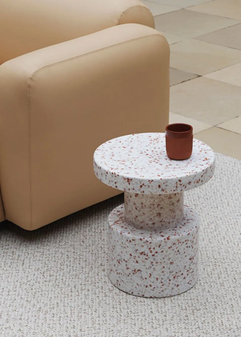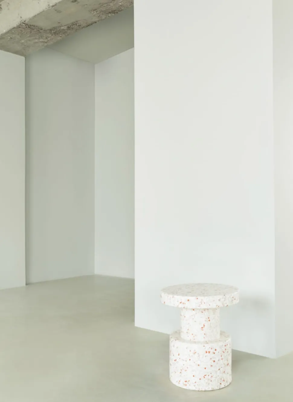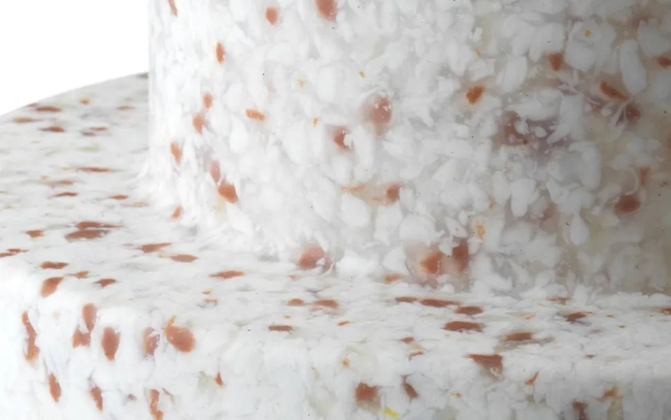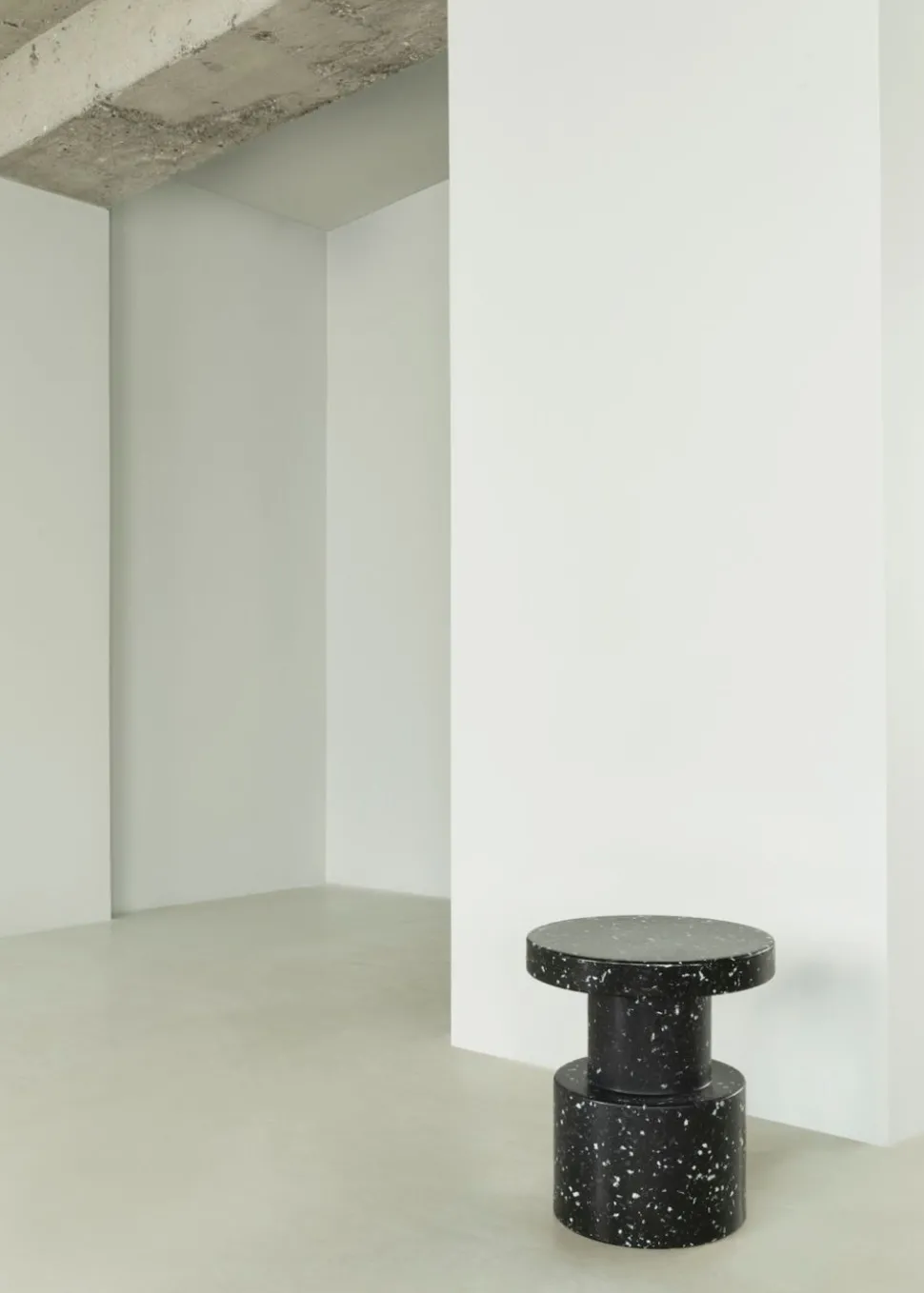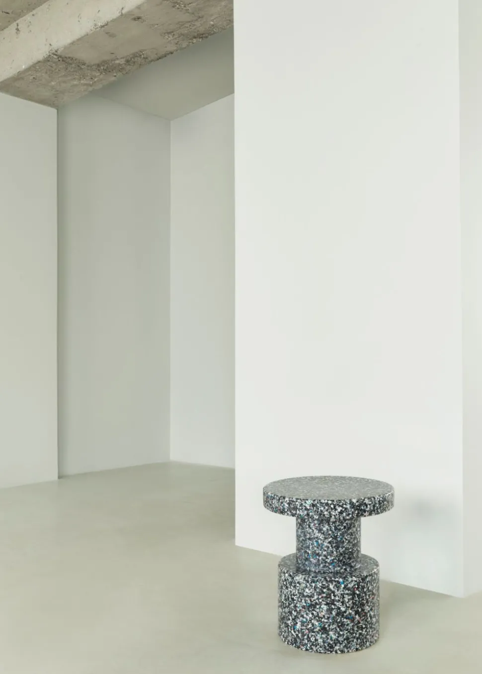 Der sehr straffe Ausdruck des Hockers wird durch eine charakteristische, verpixelte Oberfläche gebrochen, die durch kleine Stücke aus 100% recyceltem Kunststoff aus Industrie und Haushalt entsteht. Ein spezielles Verfahren, bei dem die Kunststofffragmente bis zum Schmelzpunkt bei 120 Grad erhitzt werden, ermöglicht es, das Material unzählige Male wiederzuverwenden und umzuschmelzen, ohne dass sich seine Eigenschaften verändern. Das Ergebnis ist eine einzigartige Tiefe und Komposition, die jeden Bit-Tisch ganz zu seinem eigenen macht.