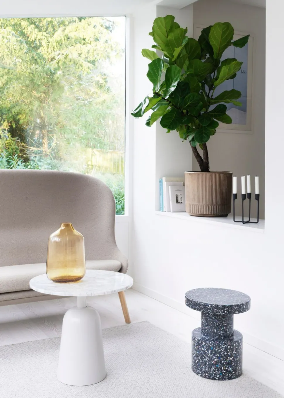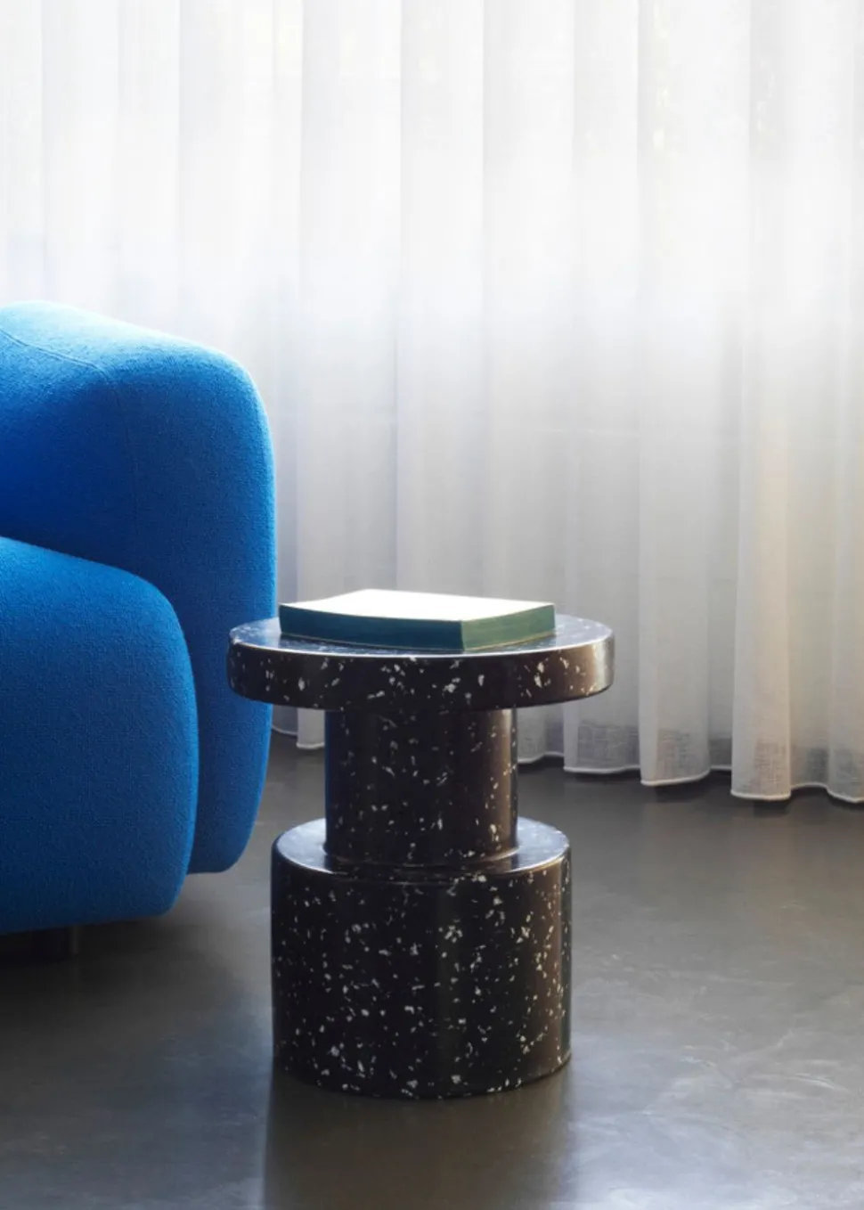 Bit Hocker von Normann copenhagen. Bit ist ein skulpturales und vielseitiges Möbelstück, das in der Wohnung auf viele verschiedene Arten erscheinen kann. Bit kann z.B. als Sockel für eine schöne Blumendekoration, als Beistelltisch oder als Hocker für den zusätzlichen Gast verwendet werden. Der Bit-Hocker ist ein Entwurf von Simon Legald.