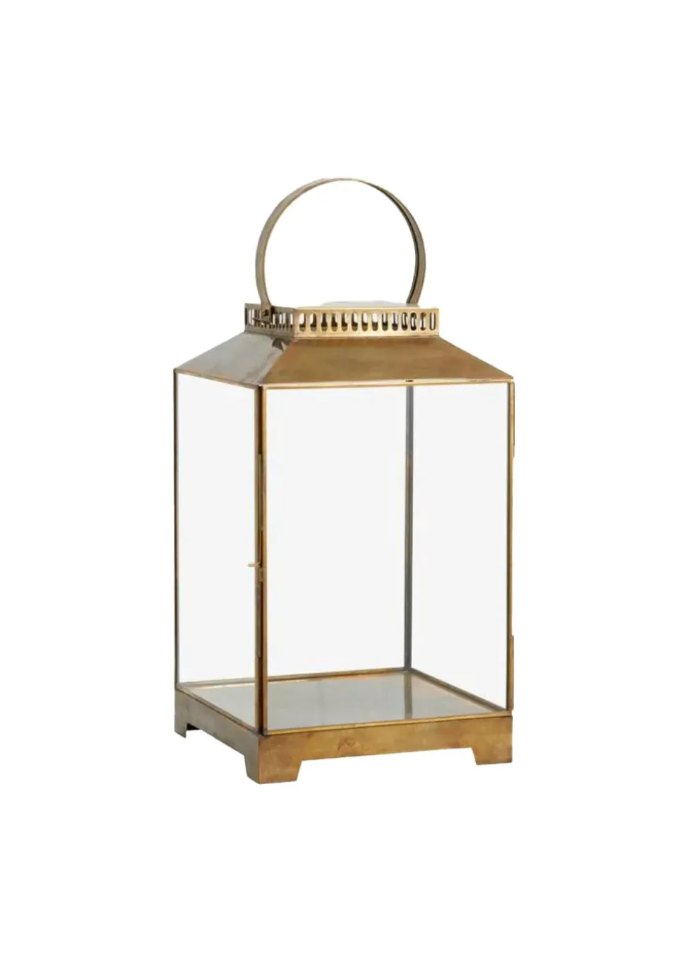 Die LaterneBITRA von ist aus Messing gefertigt und hat einen eleganten Vintage-Look. Die quadratischen Laternen sind rundum verglast, können an einer Seite geöffnet werden und haben oben einen praktischen Griff. Bringen Sie Wärme in Ihr Haus oder machen Sie es sich draußen gemütlich mit den BITRA-Laternen. Die Laternen können für Kerzen oder andere dekorative Accessoires verwendet werden.