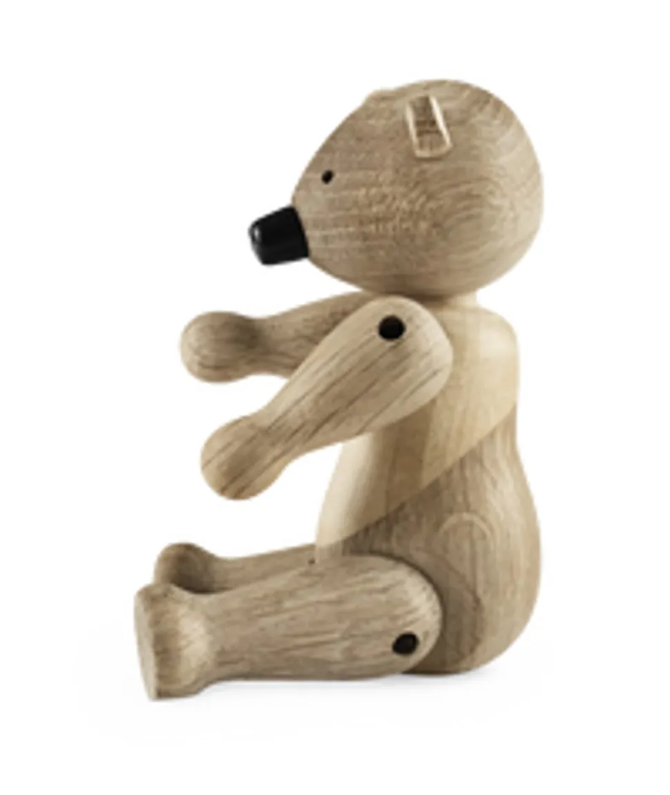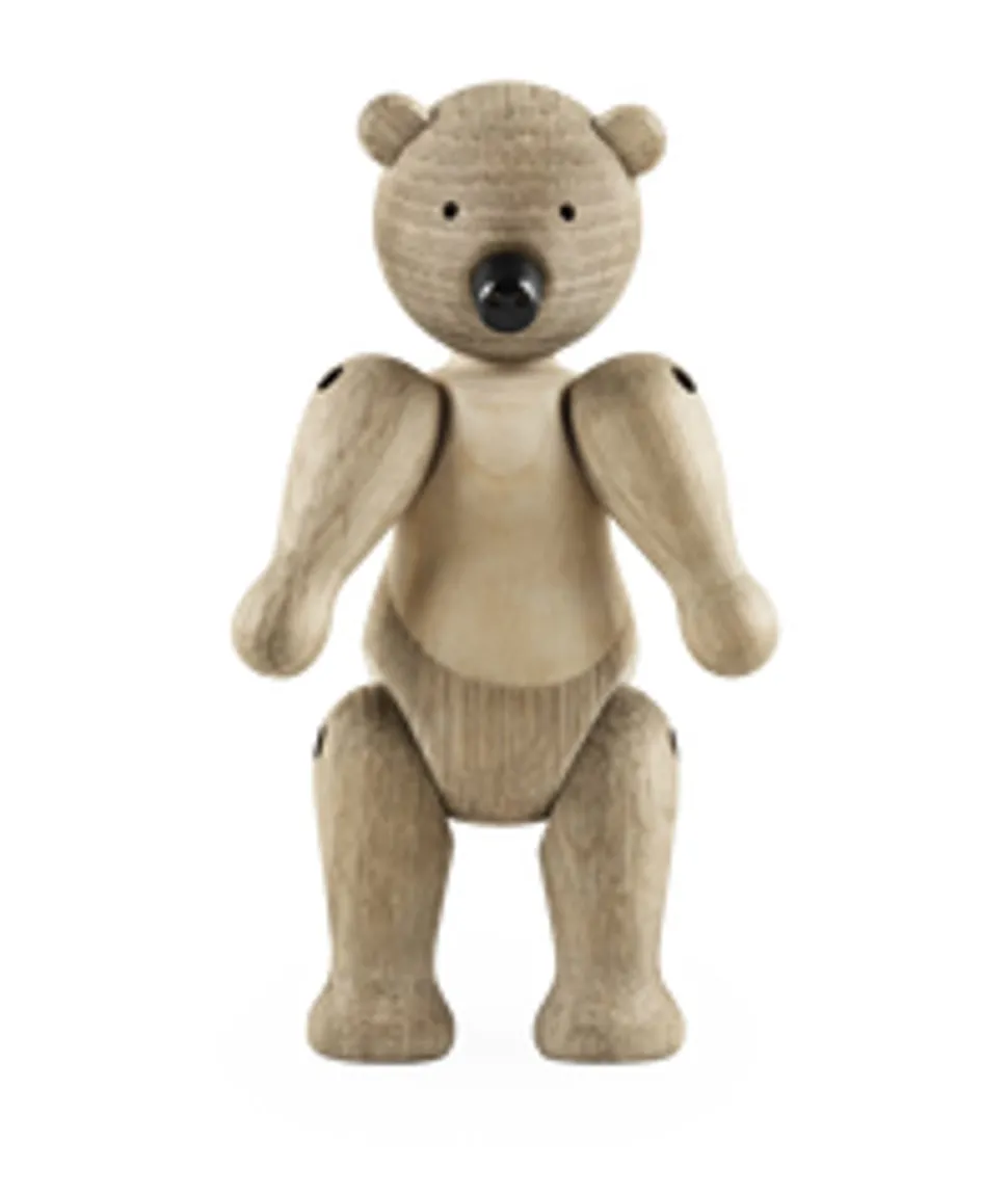 Kay Bojesen freundlicher Bär mit den offenen Armen kam 1952 in die Welt. Die Palette der fantasievollen Holzfiguren ist lang und hat einen ganz besonderen Reiz für Kinder und Erwachsene. Für Taufen, Geburtstag, Studentengeschenk, Jubiläum oder Hochzeit. Ein Klassiker und ein lieber Freund, der sich durchs Leben bewegt – vom Kinderzimmer bis zur beliebten Design-Ikone im eigenen Besitz.