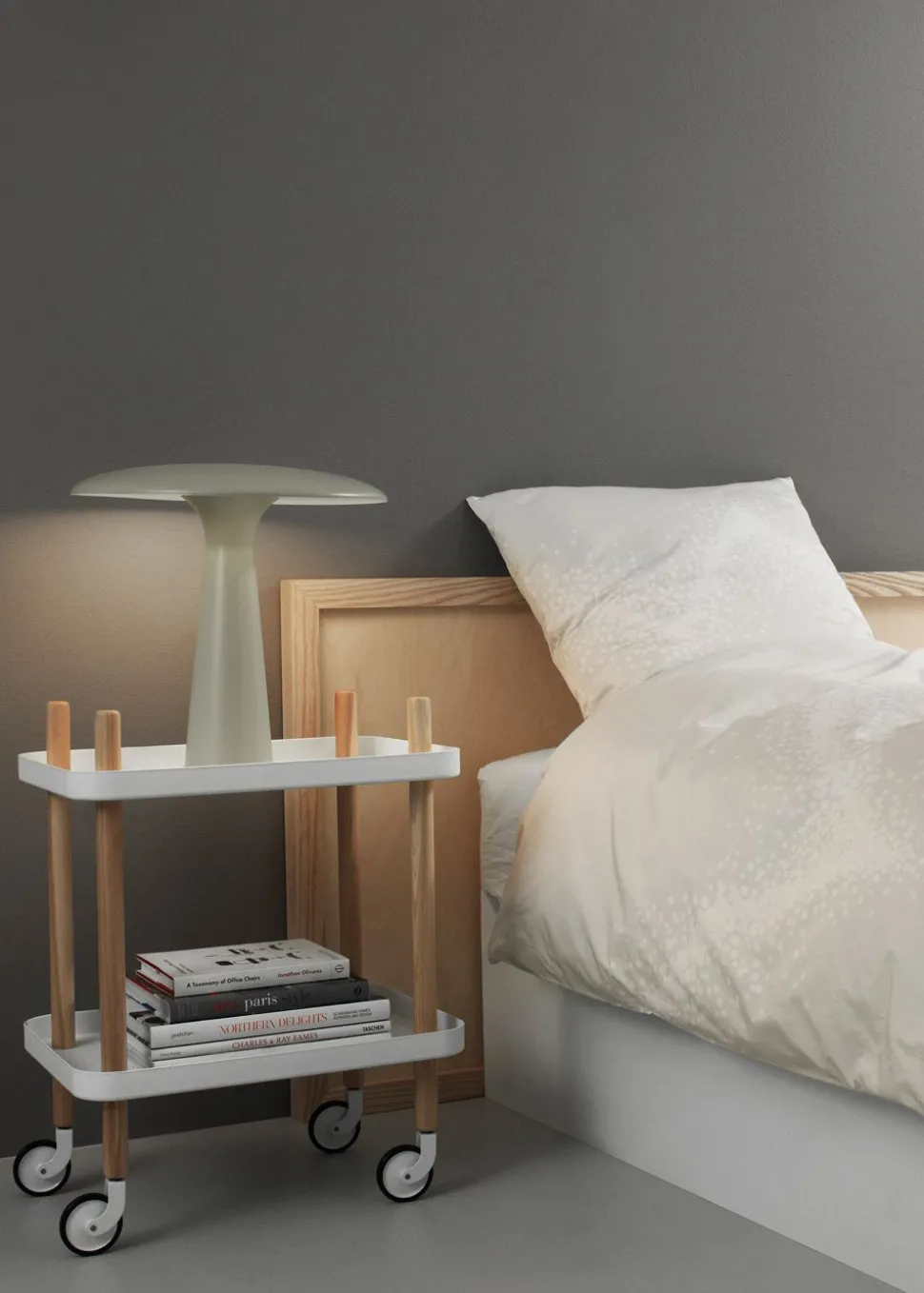 Block Table von ist jetzt schon ein Designklassiker. Er ist ein mobiler Beistelltisch auf Rollen, der einen leichten und luftigen Ausdruck hat. Es ist ein vielseitiges Möbel für Ihr Zuhause.