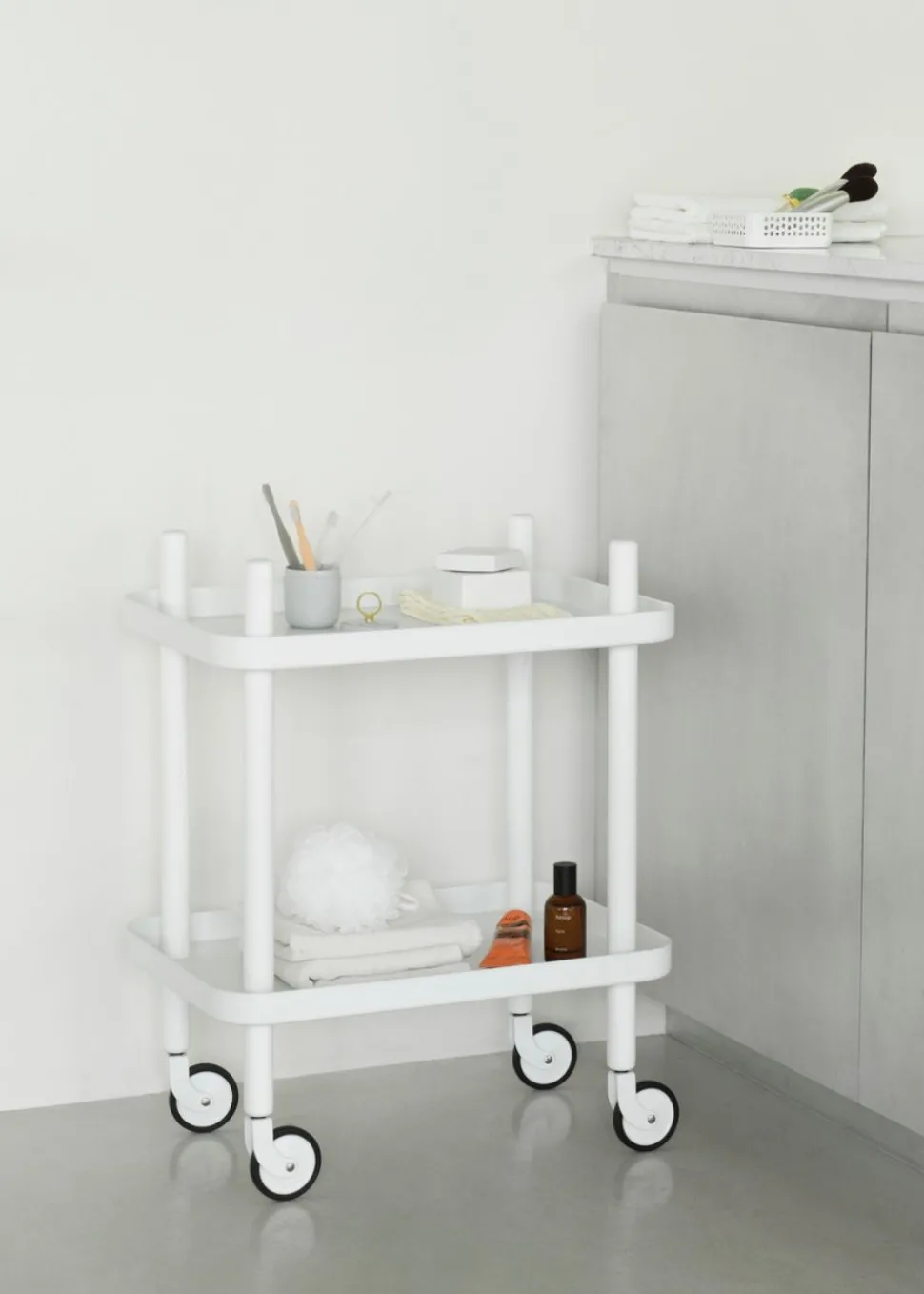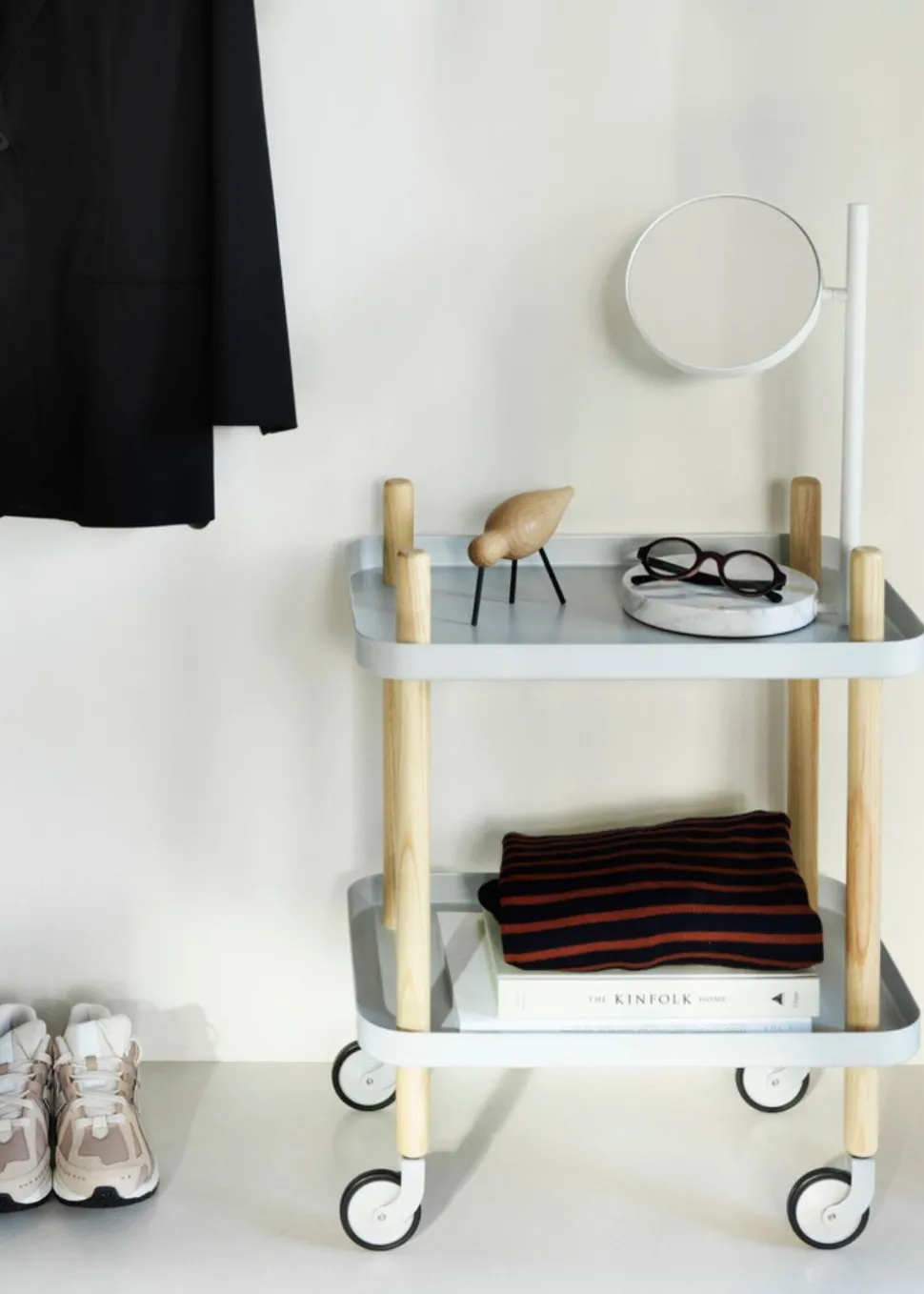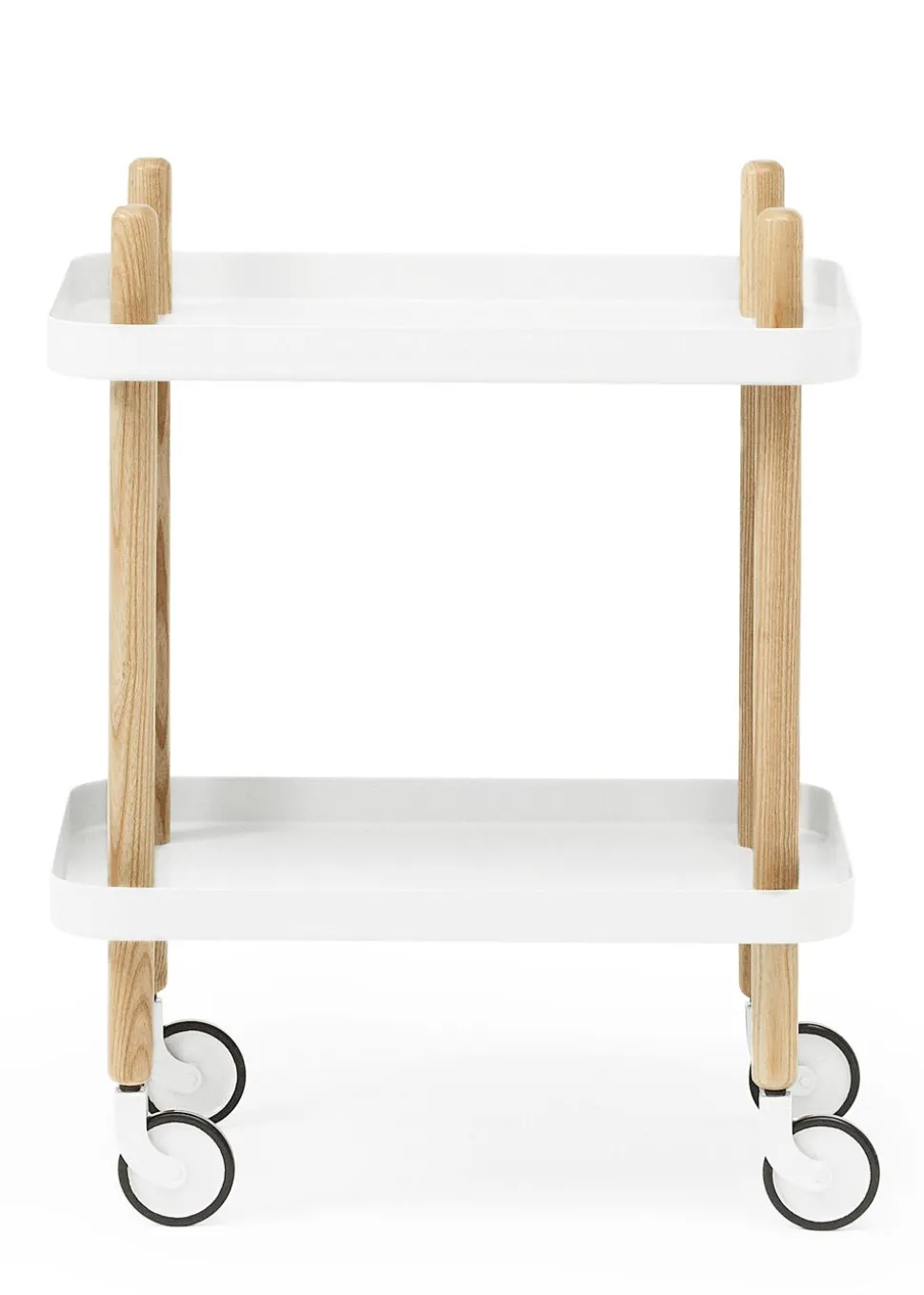 Block Table von ist jetzt schon ein Designklassiker. Er ist ein mobiler Beistelltisch auf Rollen, der einen leichten und luftigen Ausdruck hat. Es ist ein vielseitiges Möbel für Ihr Zuhause.