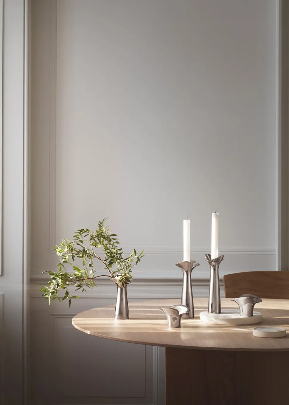 Der Bloom Botanica-Kerzenhalter vereint Funktionalität und Stil und schmückt jeden Raum, sei es ein intimer Esstisch oder ein gemütliches Plätzchen am Fenster an kühlen Herbstabenden. In Kombination mit zartem Porzellan oder robusten Holzoberflächen aus unserer Kollektion schafft er ein Bild von ausgewogener Ästhetik und charmanter Wärme. Stellen Sie ihn zwischen üppiges Zimmergrün oder auf einen schlichten, modernen Konsolentisch, so dass der Kerzenhalter sowohl mit der Moderne als auch mit der Klassik spielt und eine Nische von zeitloser Eleganz in Ihrem Zuhause schafft.