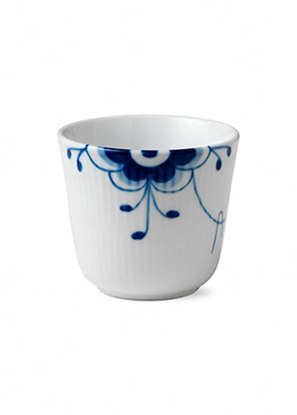 High Handle Tasse, Thermotassen und Tassen von in der legendären Serie „Blue Fluted Mega“, aus weißem Porzellan mit dem bekannten „Mega Muschel“-Design, handgemalt im original Blue. „Blue Fluted Mega“ ist seit seiner Gründung im Jahr 2000 eine beliebte Dinnerwear in vielen dänischen Haushalten, mit seiner modernen Interpretation der originalen „Blue Fluted“ Dinnerwear, die alte dänische Traditionen auf eine neue und modernisierte Weise ins Haus bringt.