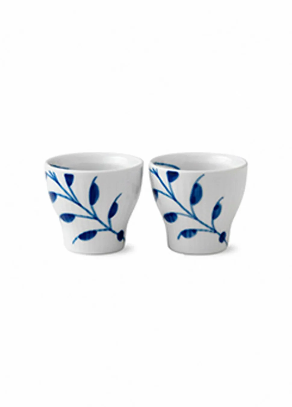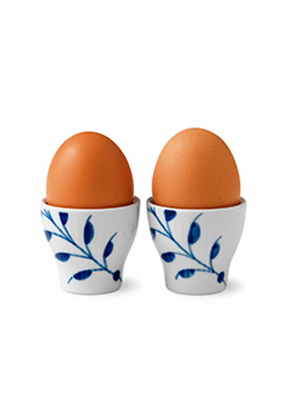 Eierbecher von in der legendären Serie „Blue Fluted Mega“ aus weißem Porzellan im bekannten Design „Mega Muschel“, handgemalt im Original Blue Fluted Mega“ ist seit seiner Gründung im Jahr 2000 in vielen dänischen Häusern eine beliebte Dinnerwear mit einer modernen Interpretation der Original-Dinnerwear „Blue Fluted Lace“, die alte dänische Traditionen auf neue und modernisierte Weise ins Haus bringt.