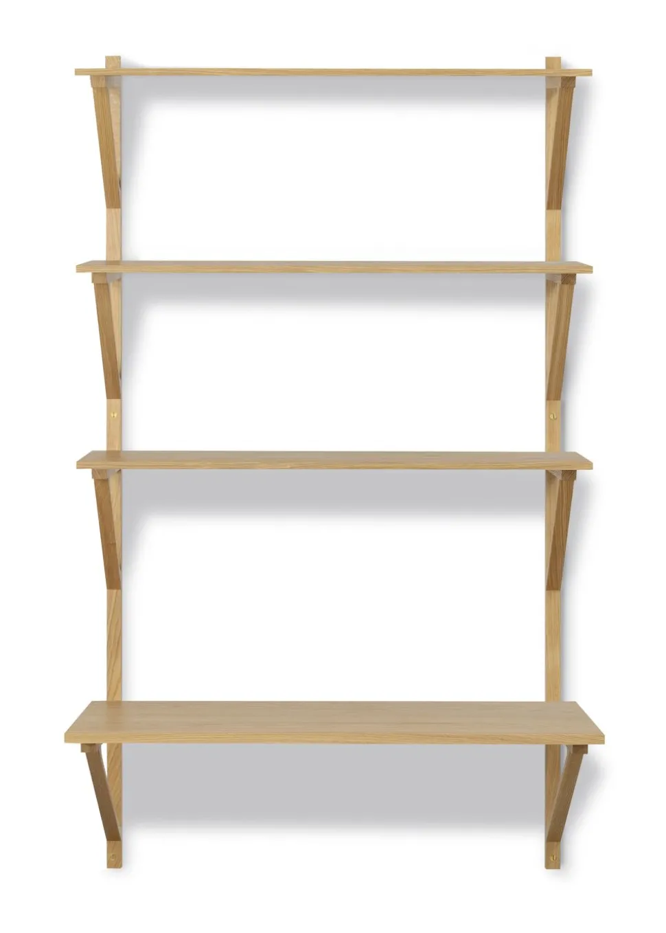 Das BM29 Regal 2901 ist mehr als nur eine Aufbewahrungslösung, es ist der Inbegriff von funktionellem Design. Sein minimalistisches Design sorgt dafür, dass es sich perfekt in jeden Raum einfügt, egal ob es sich um ein modernes Wohnzimmer oder ein traditionelles Arbeitszimmer handelt. Er eignet sich perfekt als kleines Büro oder als kreativer Arbeitsplatz. Die drei Ablagen und die größere Tischplatte erweitern die Funktionalität im echten Mogensen-Stil. Kombinieren Sie es mit anderen Mogensen-Möbeln, um einen einheitlichen, ikonischen Look zu erzielen, oder lassen Sie es allein stehen, um Ihre wertvollen Gegenstände, von Büchern bis hin zu Artefakten, elegant zu verstauen.