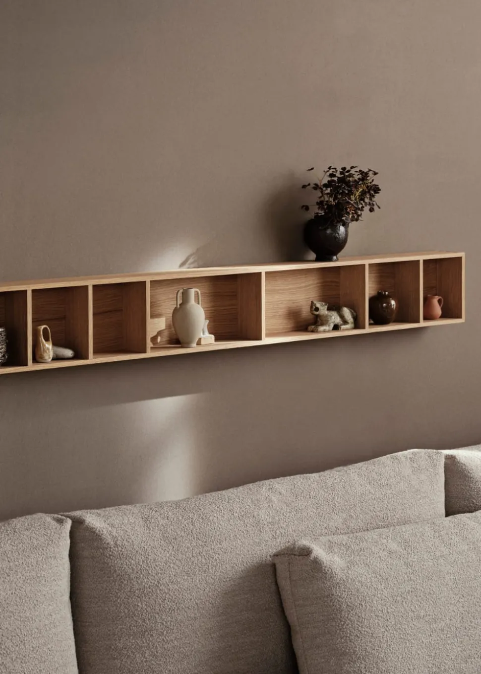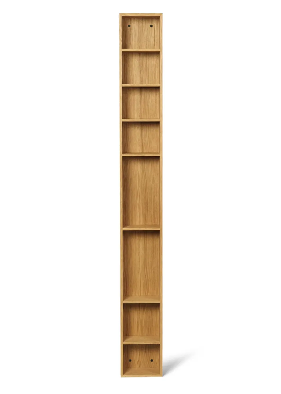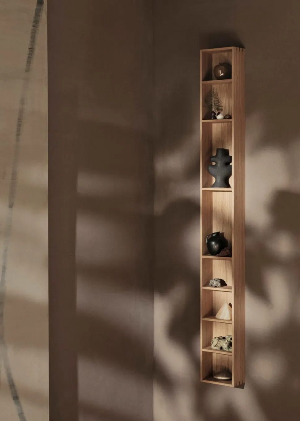 Das Bon Regal von ist eine einfache und stilvolle Möglichkeit, Stauraum in Ihrem Zuhause zu schaffen. Das Regal hat eine klassische rechteckige Form, die in mehrere Fächer unterteilt ist. Die schöne Tischlerarbeit zeigt sich in dem dunkel geölten Holz und den sichtbaren Fugen an den Ecken des Regals. Verwenden Sie das Regal vertikal oder horizontal, um Ihre Lieblingsrahmen aufzubewahren, als Bücherregal oder einfach, um Ihre Dekorationsgegenstände zu präsentieren.