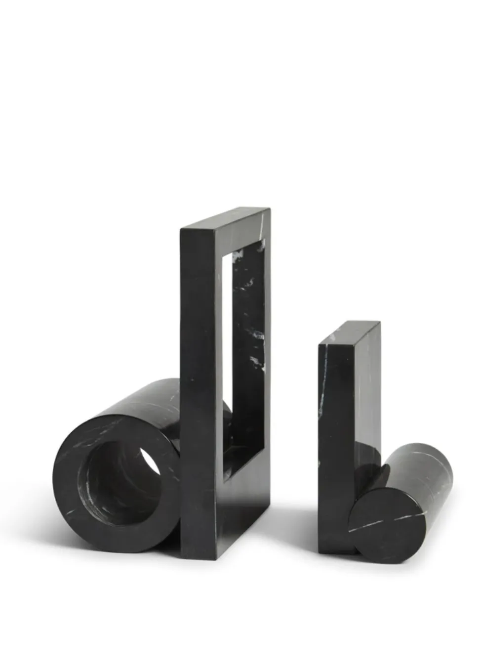 Booknd von ist aus glattem, massivem Marmor mit einzigartigen Details gefertigt. Mit ihren grafischen Formen und Linien kombinieren die Buchstützen weiche Formen mit konsequenten, geraden Linien und schaffen so einen einzigartigen Kontrast.