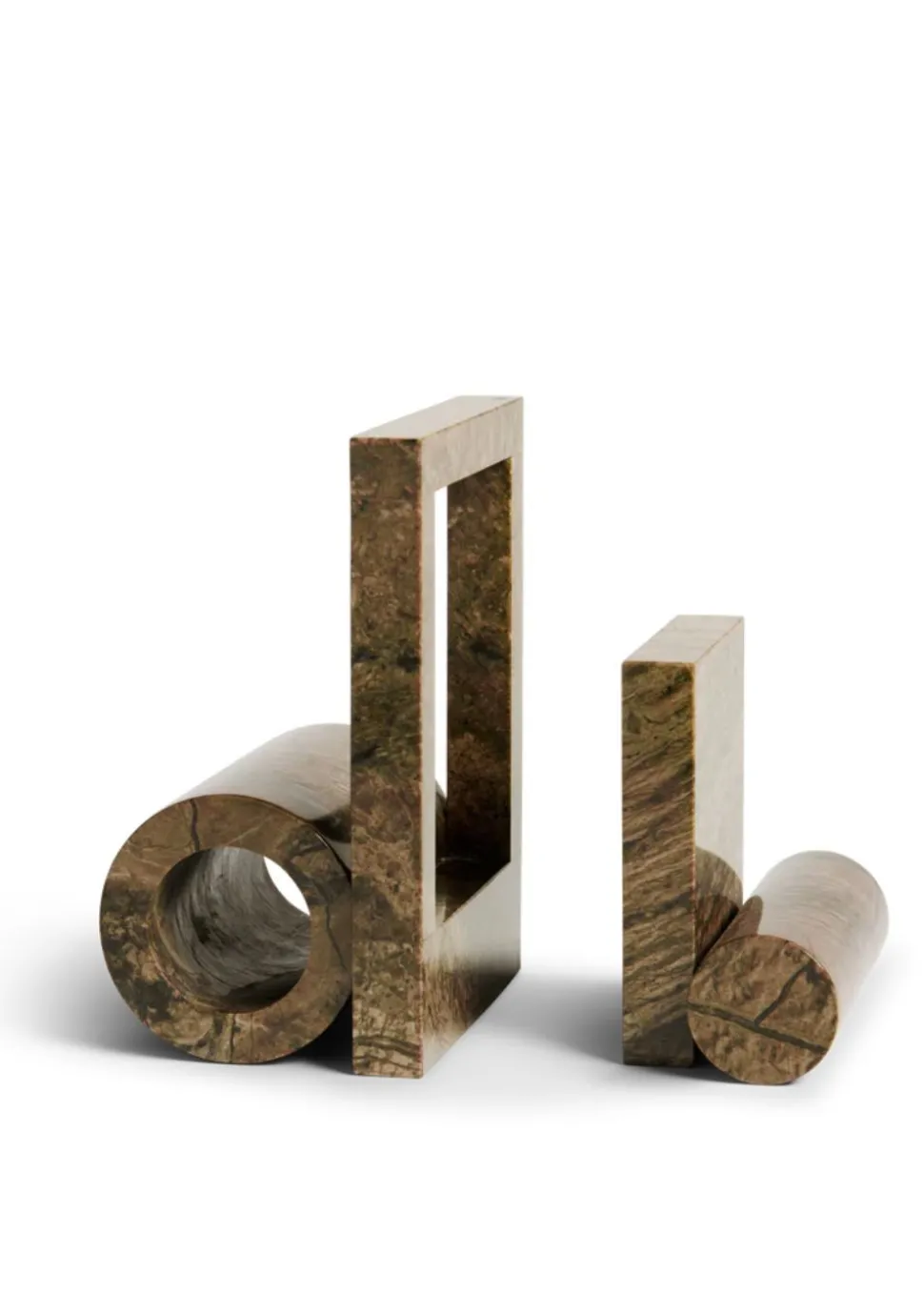 Booknd von ist aus glattem, massivem Marmor mit einzigartigen Details gefertigt. Mit ihren grafischen Formen und Linien kombinieren die Buchstützen weiche Formen mit konsequenten, geraden Linien und schaffen so einen einzigartigen Kontrast.