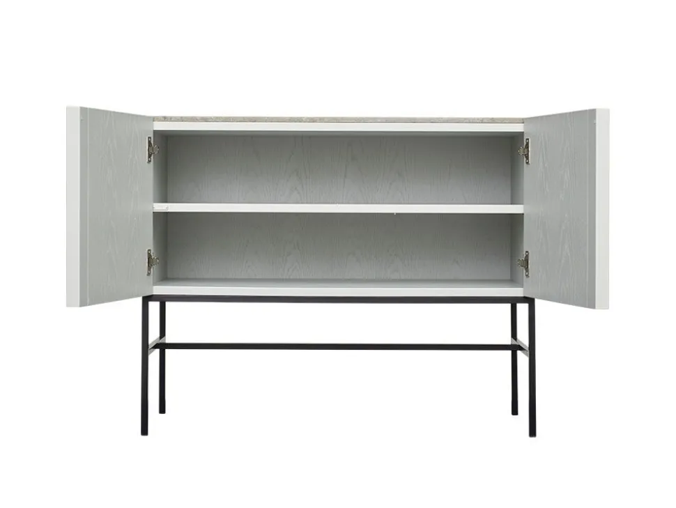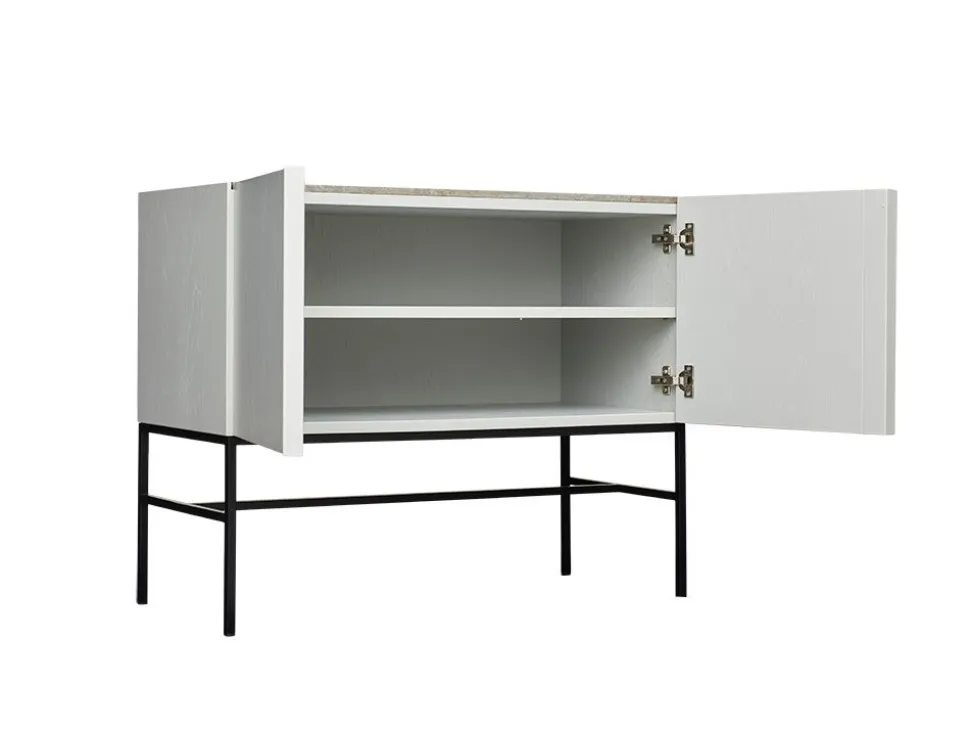 - Aus lackierter Eiche mit pulverbeschichtetem Metallrahmen und Steinplatte