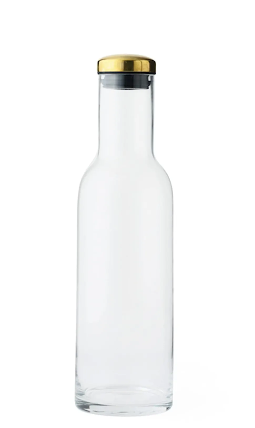 Die Flaschenkaraffe von ist eine hohe, minimalistische und einfache Karaffe, die von Norm Architects entworfen wurde. Die Karaffe ist aus mundgeblasenem Glas gefertigt. Die Farbe verleiht dem Dekanter ein klares, modernes Aussehen, und er kann sowohl für Wein als auch für Wasser verwendet werden.